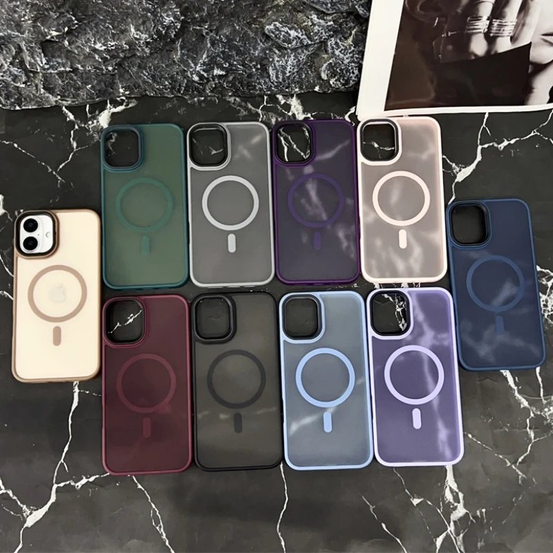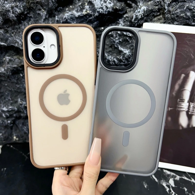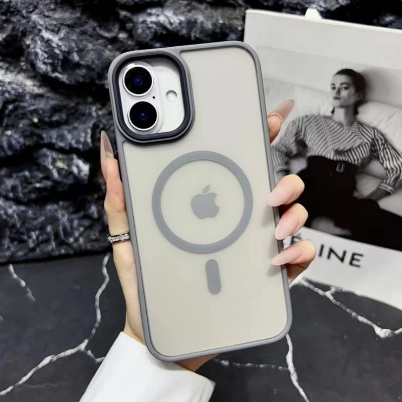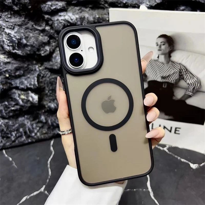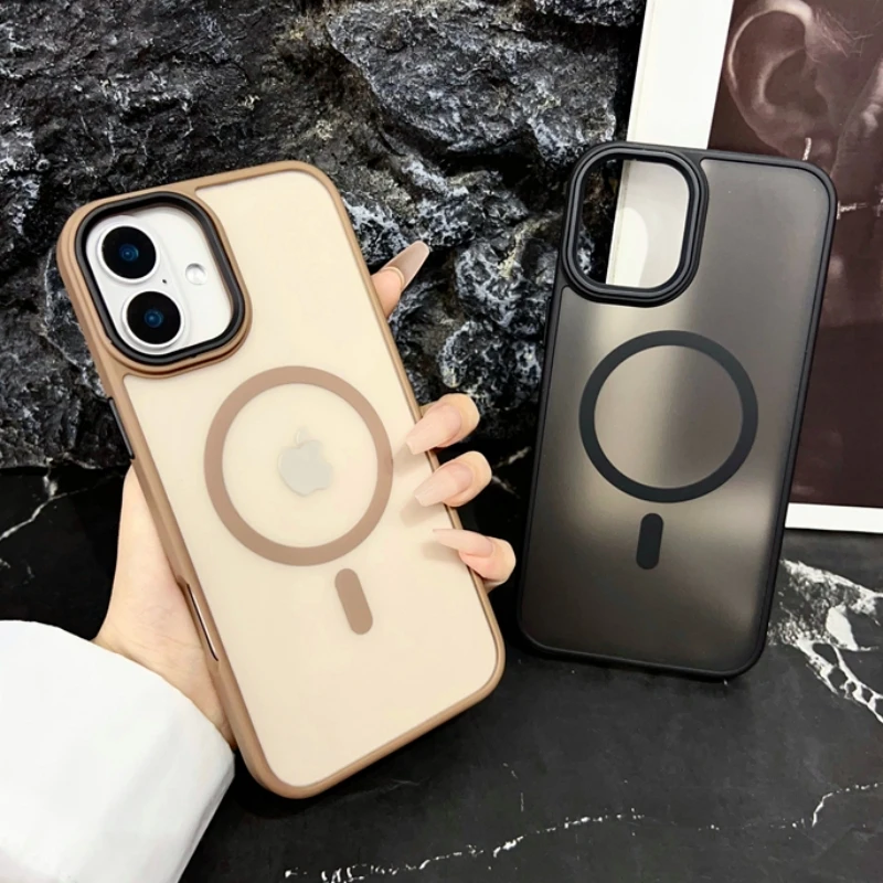 Nuevo oro delgado mate para Magsafe funda de teléfono magnético para iPhone 16 15 14 Plus 13 12 11 Pro Max transparente a prueba de golpes armadura cubierta