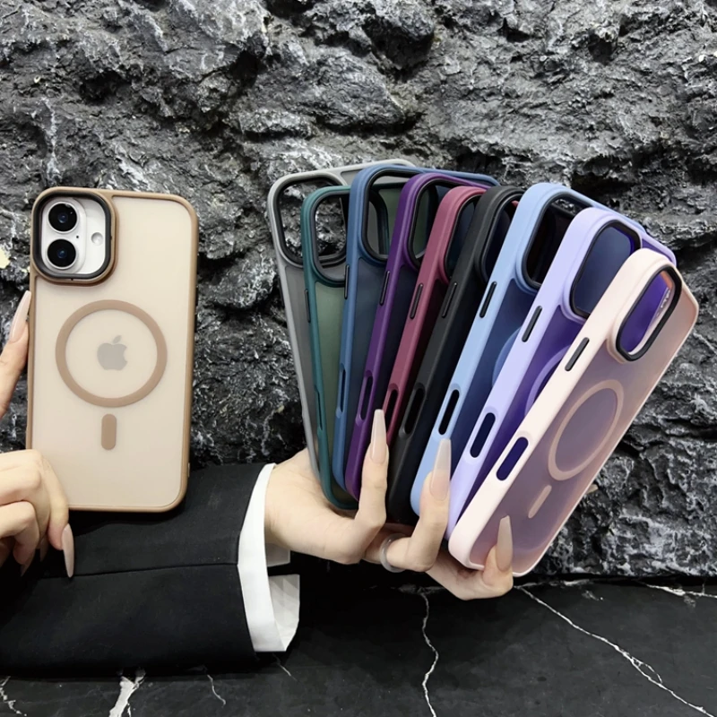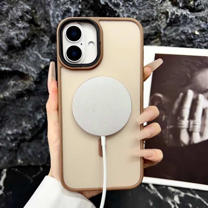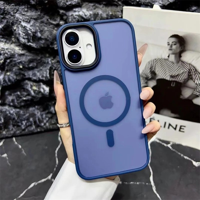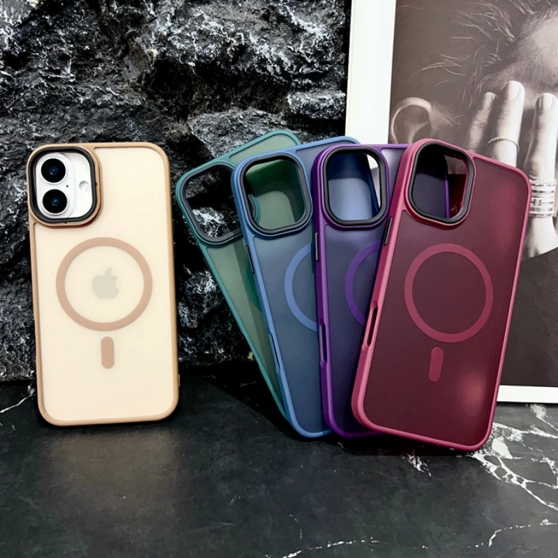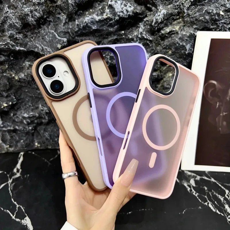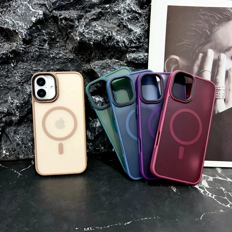 Nuevo oro delgado mate para Magsafe funda de teléfono magnético para iPhone 16 15 14 Plus 13 12 11 Pro Max transparente a prueba de golpes armadura cubierta