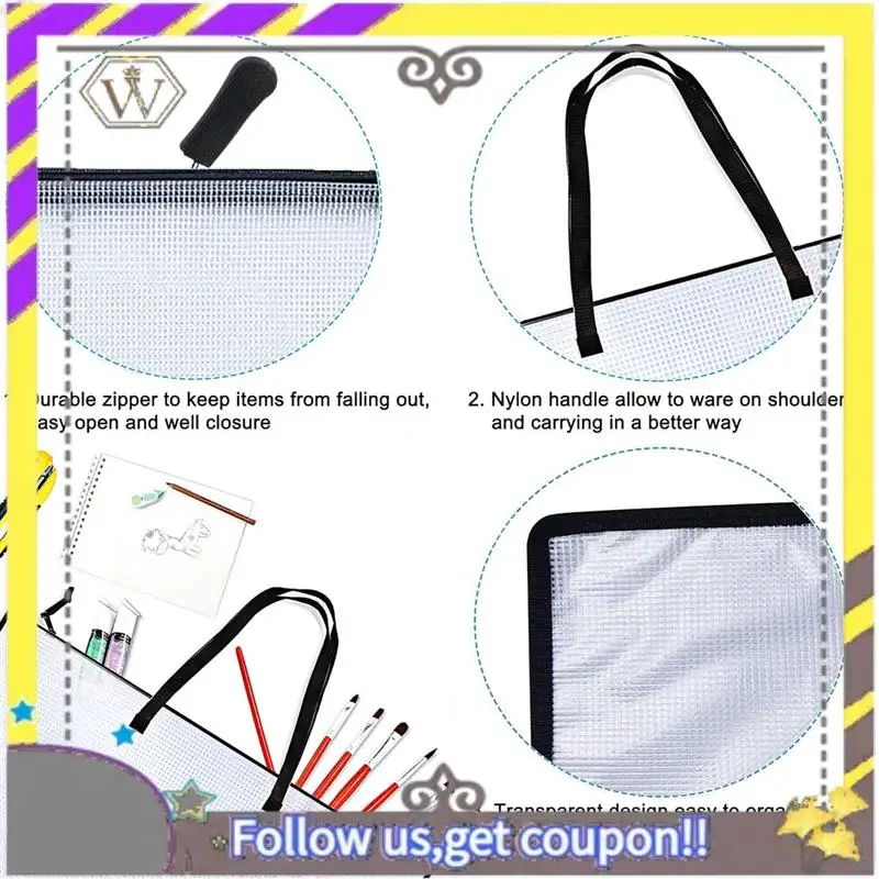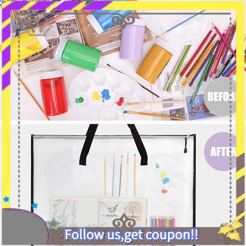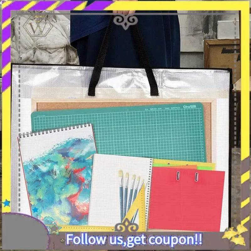 [Ligero y resistente] Tanto las correas de nailon como los bordes cerrados están cosidos para sujetar de forma segura la malla.Además, la construcción de malla hace que nuestras carpetas de cartera de arte grandes sean más resistentes que las bolsas de plástico transparentes comunes.