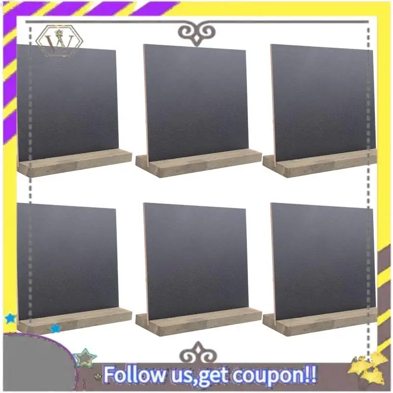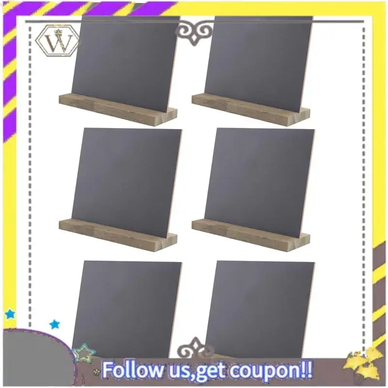 Nuevo paquete de 6 letreros de pizarra rústica con soporte de madera para decoraciones de boda, letreros, etiquetas, pizarra de 6x5 pulgadas REescritible: Las pizarras funcionan con tiza y marcadores de tiza líquida, se pueden limpiar con un paño o pañuelo húmedo.
