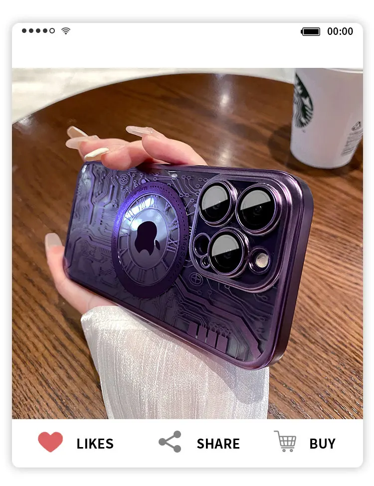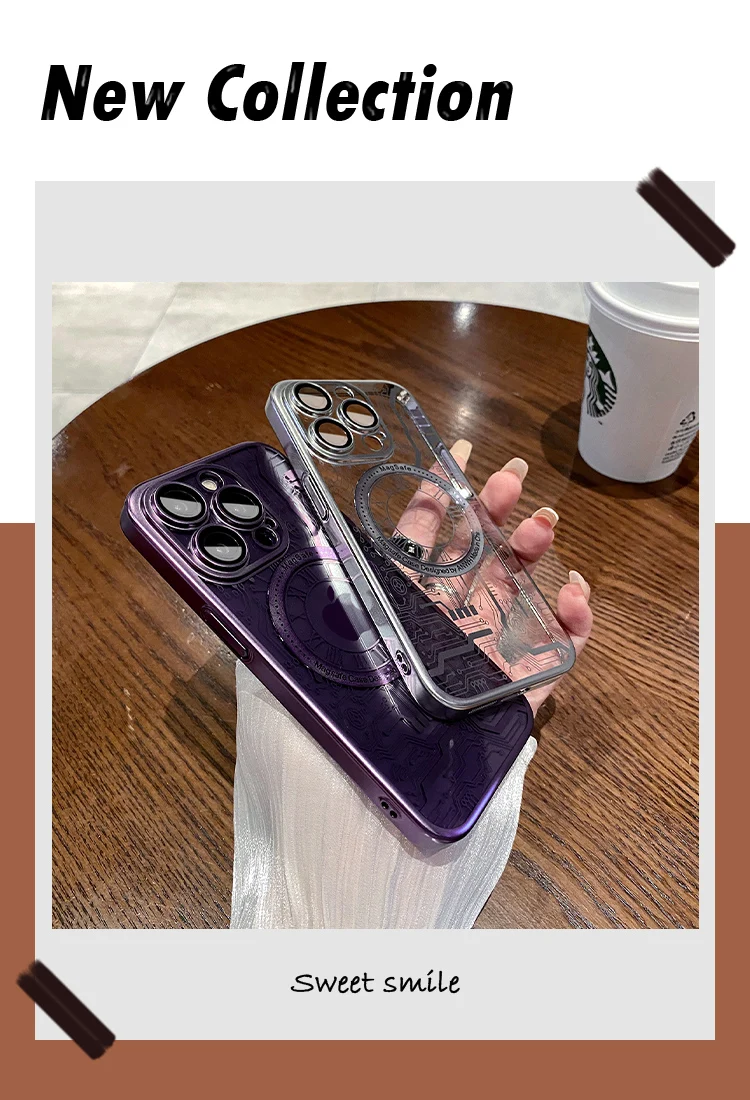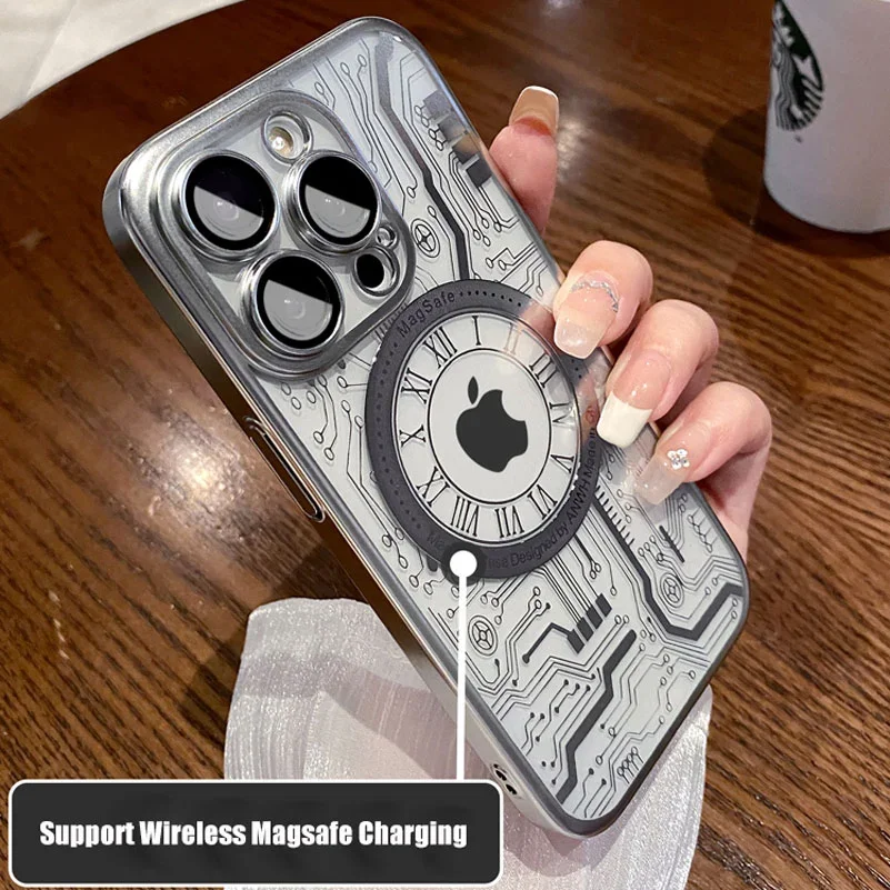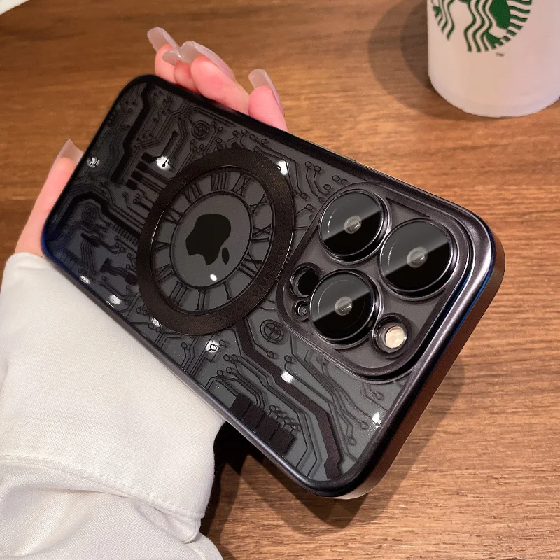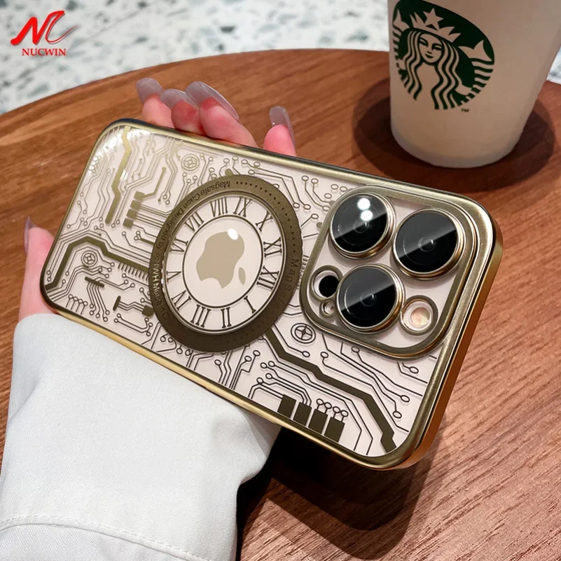 Comprar Nuevo patrón de circuito Magsafe funda para iPhone 16 Pro Max 11 12 13 14 15 Pro Max Plus Protector de lente chapado de lujo cubierta de silicona