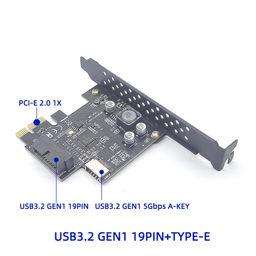 NUEVO PCI Express 2.0 X1 USB 3.2 Gen1 19Pin + Tarjeta de expansión TYPE-E Adaptador frontal PCIe Tipo-C Riser Tipo-E USB3.2 A-KEY Tarjeta de 5Gbps