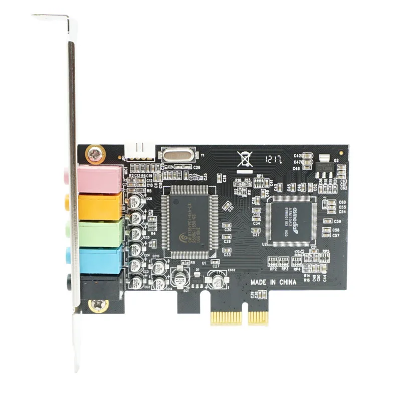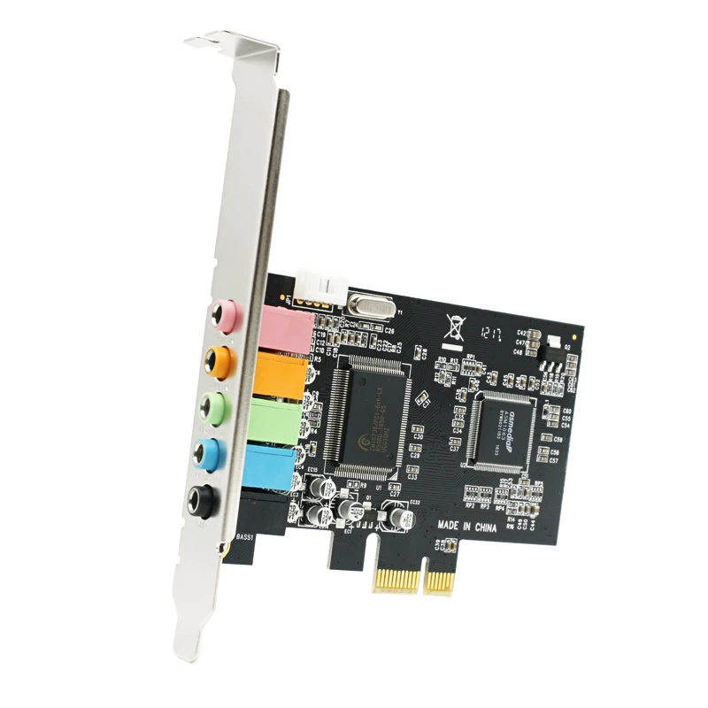 Comprar Nuevo PCI Express x1 PCI-E 5,1 canales CMI8738 Chipset Audio tarjeta de sonido Digital nueva venta al por mayor condensadores sólidos tarjeta de sonido pcie 5,1