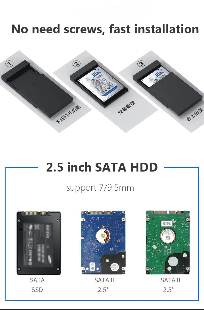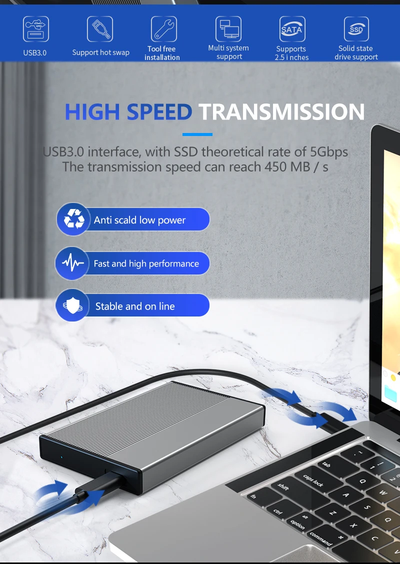 Comprar Nuevo producto Caja HDD Sata a USB 3.0 Caja de disco duro de alta velocidad de hasta 10 Gbps para Macbook PC Accesorios para portátiles