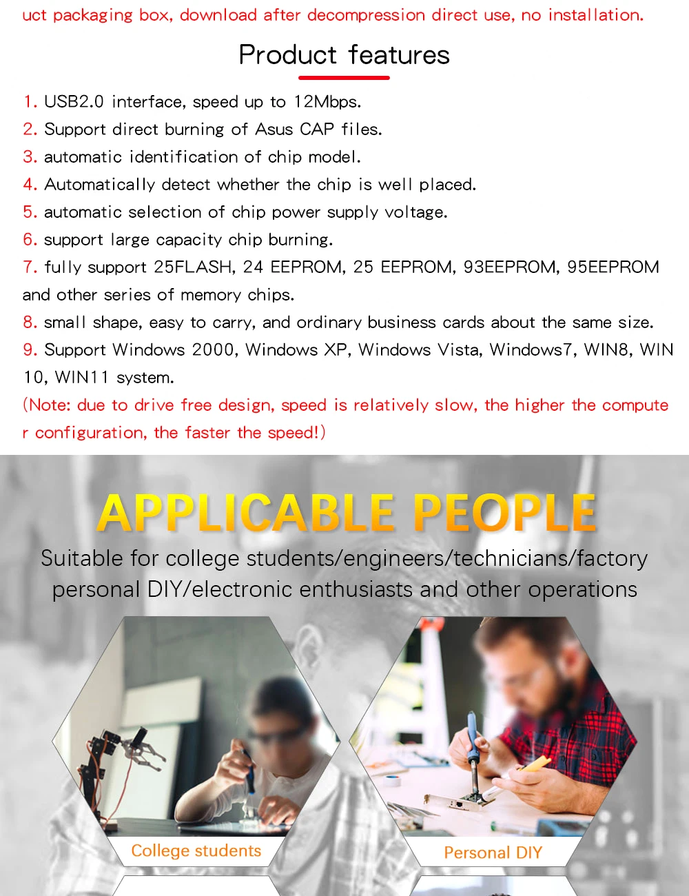 Nuevo programador EZP2025 sin unidad compatible con chips de la serie 24/25/93/95 para reconocer automáticamente asus CAP quema directa