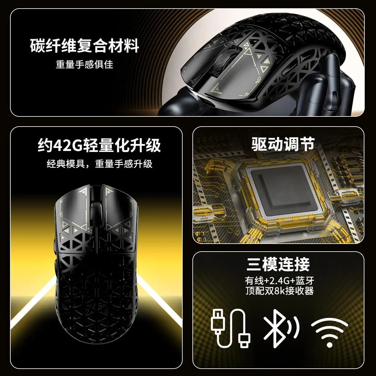Comprar Nuevo ratón flotante IPI, ratón inalámbrico de modo Tri personalizado PAW3395 8000Hz, ratón hueco de fibra de carbono para juegos, accesorios para PC