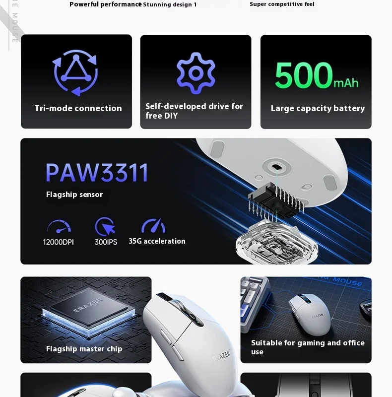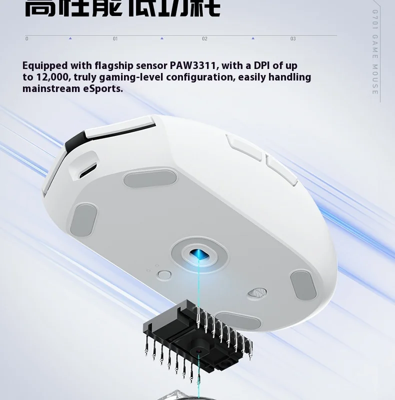 Nuevo ratón de oficina G701Ratones inalámbricos de tres modos ligeros PAW3311 500mAh 12000DPI para PC y juegos para ordenador portátil