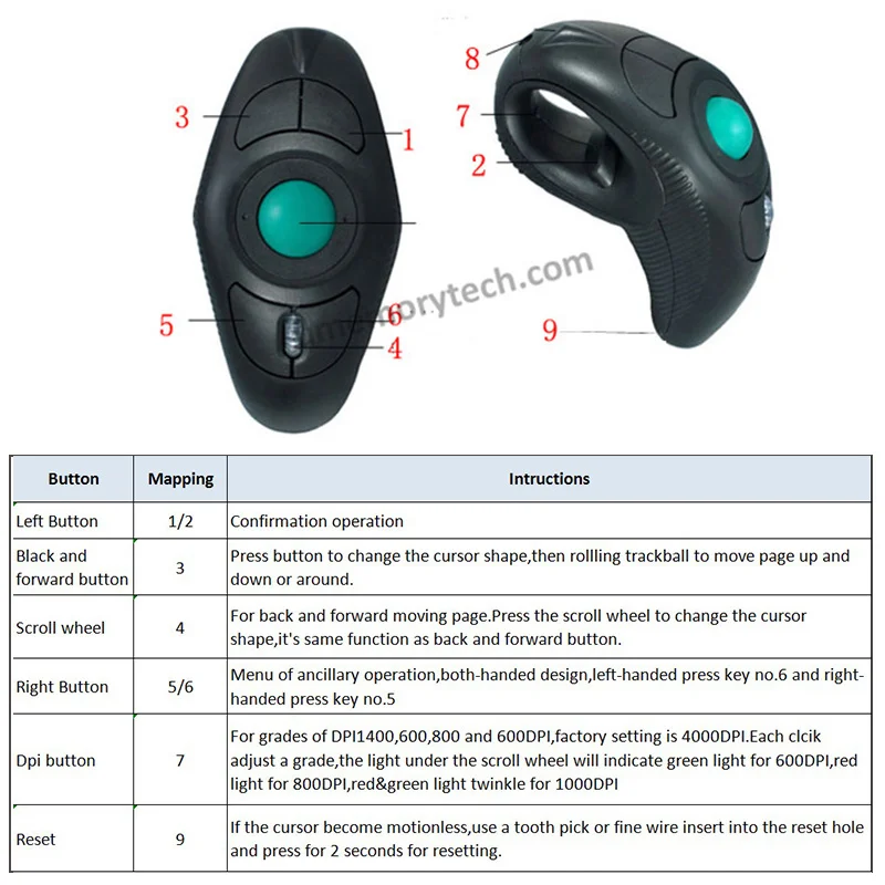 Ratón trackball portátil para dedo-con diseño de mesa para un funcionamiento libre y cómodo. Es ideal para usuarios de ordenadores portátiles.