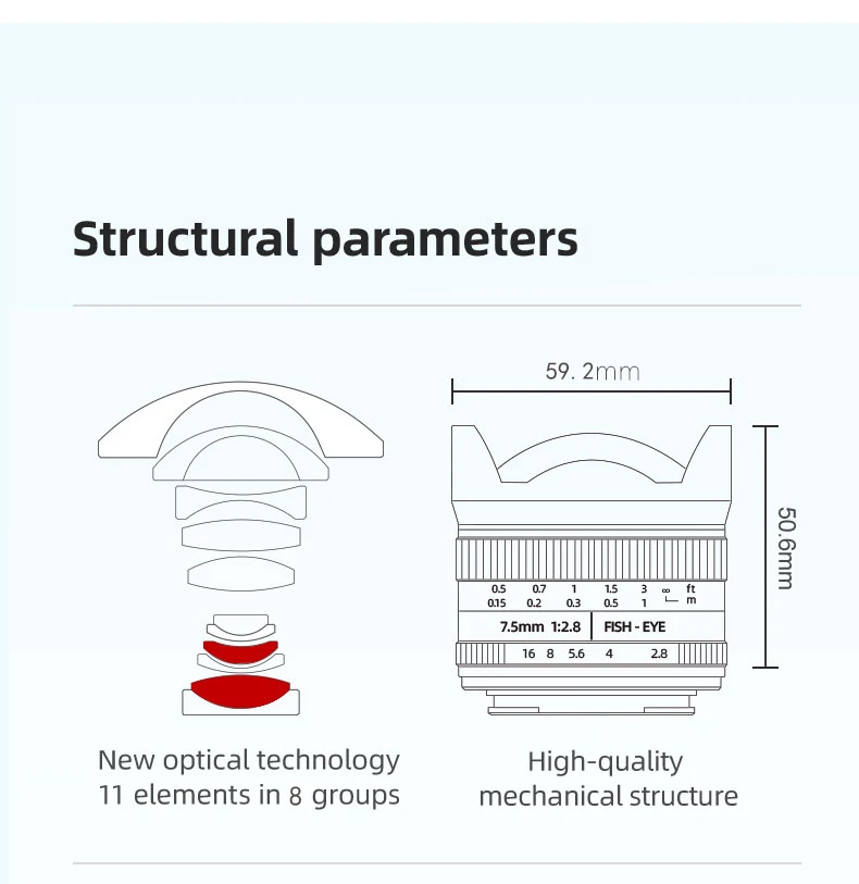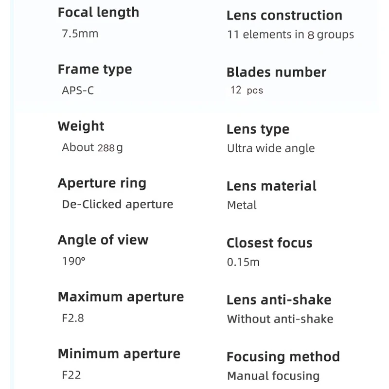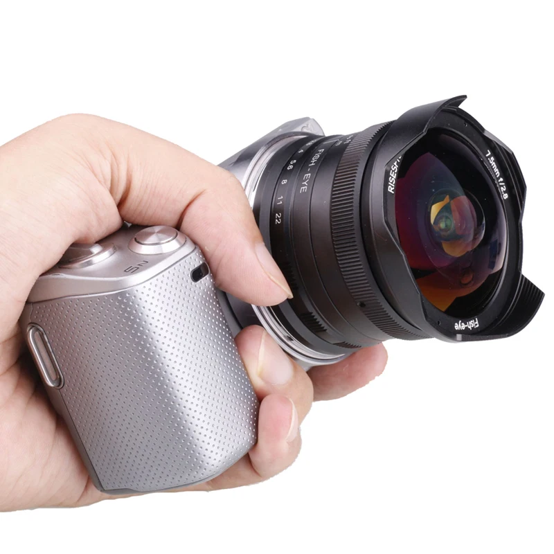Comprar Nuevo RISESPRAY 7,5 mm f2.8 II 190 ° Lente ojo de pez fija Manual APS-C para Sony E Canon Fuji OLYMPUS M3/4 Panasonic