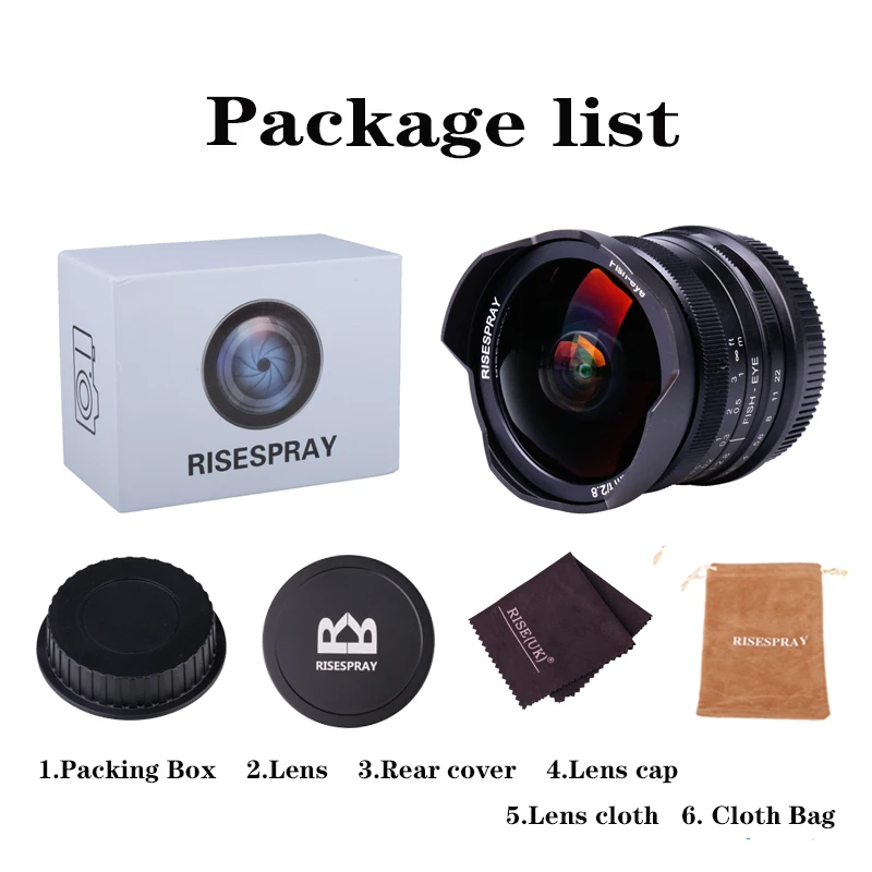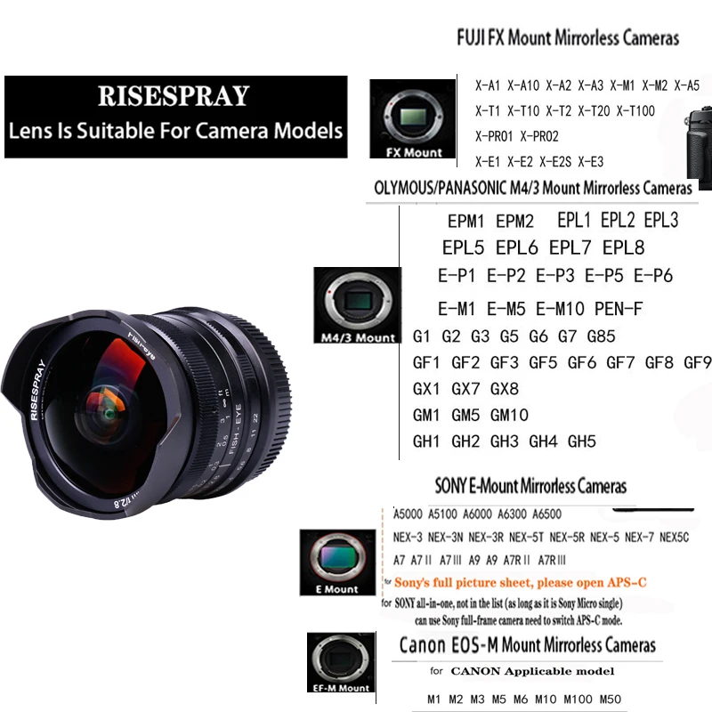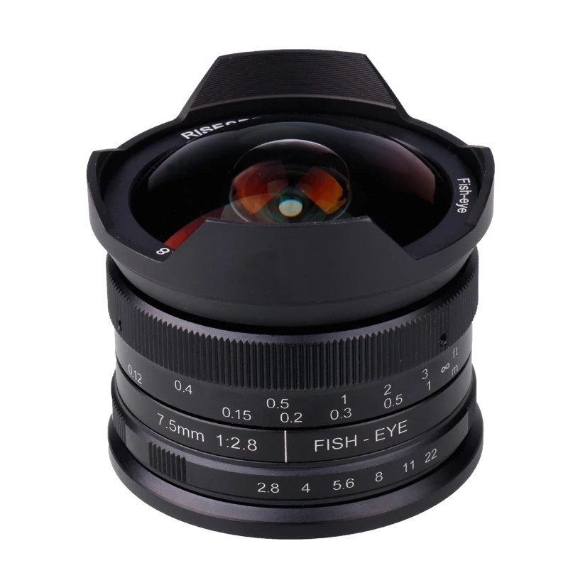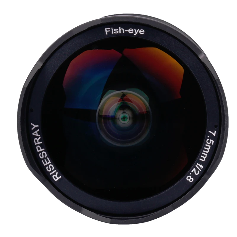 Comprar Nuevo RISESPRAY 7,5 mm f2.8 II 190 ° Lente ojo de pez fija Manual APS-C para Sony E Canon Fuji OLYMPUS M3/4 Panasonic