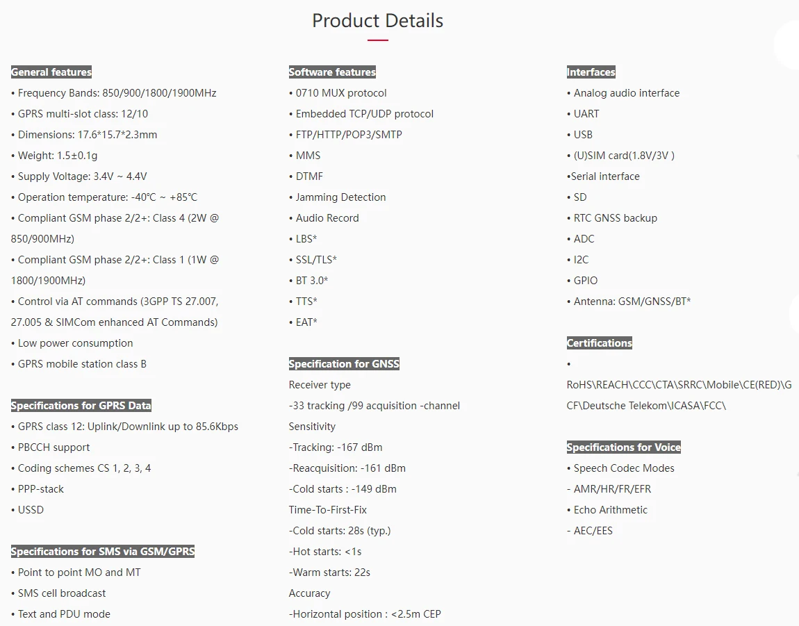 El módulo SIM868 es el módulo GSM/GPRS de cuatro bandas completo que combina la tecnología GNSS (GPS/GLONASS/BDS) para la navegación por satélite.Tiene una gran capacidad de extensión con abundantes interfaces que incluyen UART, USB2.0, GPIO, etc.El módulo proporciona mucha flexibilidad y facilidad de integración para las aplicaciones del cliente.