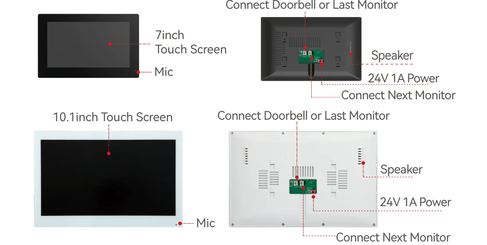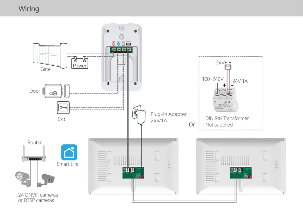 4.Adaptador de corriente: el timbre exterior y el monitor interior comparten un adaptador de corriente de 24 V 1 A.