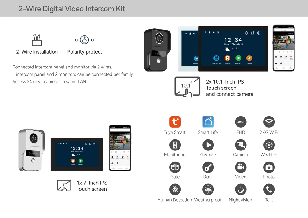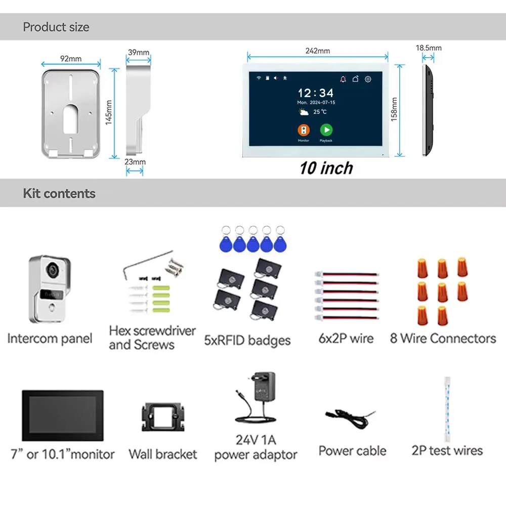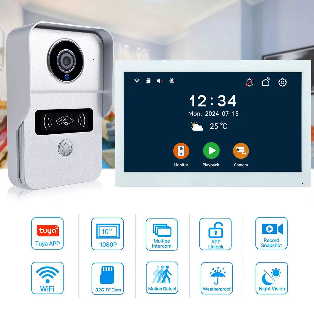 Nuevo sistema de videoportero Digital de 2 cables, 2 uds., 10 pulgadas, Monitor WIFI, 1080P, cámara de videoportero, tarjeta de timbre, desbloqueo de aplicación Tuya