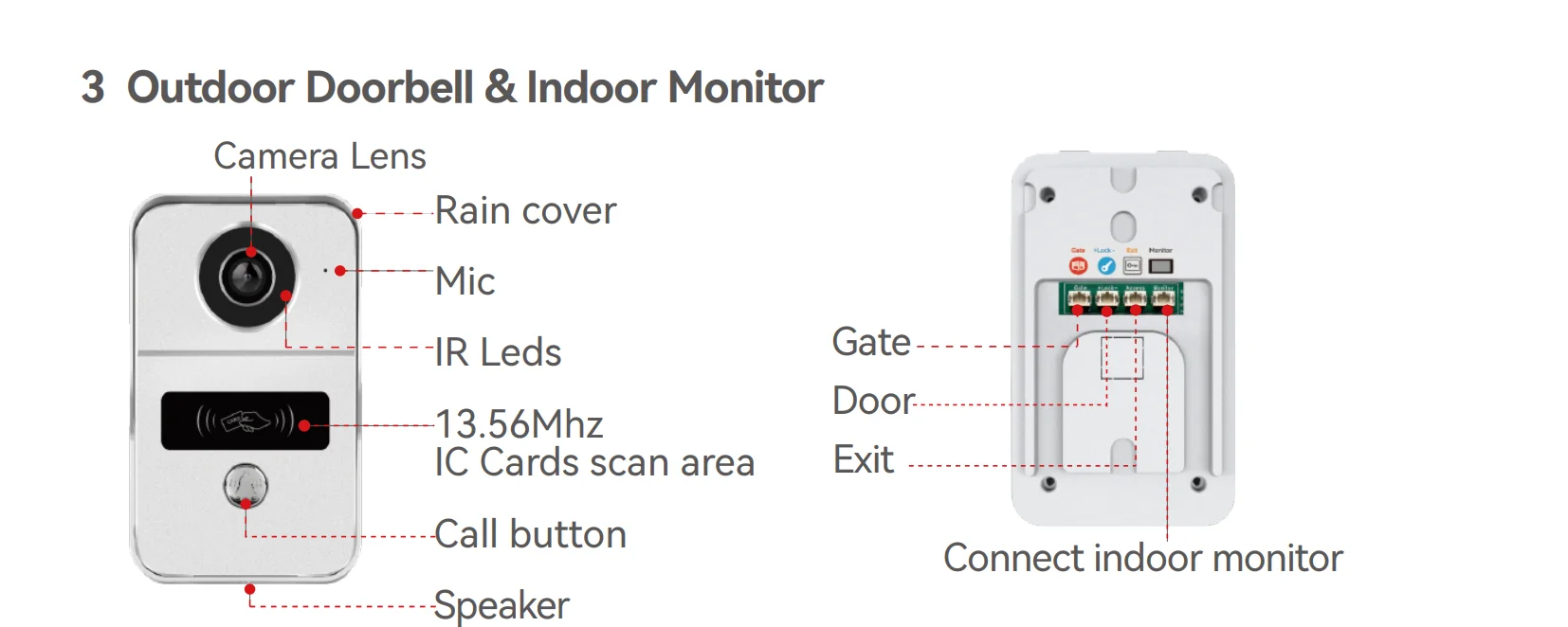 El sistema de videoportero Wifi no significa que no necesita cables. El monitor admite red WIFI (solo se conecta con la banda del enrutador de 2,4 GHZ), pero el monitor interior y el timbre están conectados.