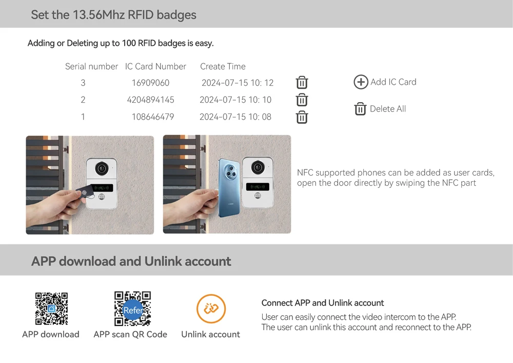 Compatible con aplicación Tuya de teléfono Android/IOS/desbloqueo de tarjeta inductiva