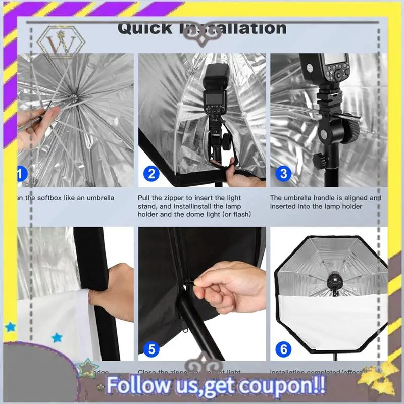 4.Fácil configuración y portabilidad: diseñada para fotógrafos en movimiento, esta softbox liviana y portátil es fácil de montar y desmontar, lo que la hace ideal para horarios de disparo rápidos.