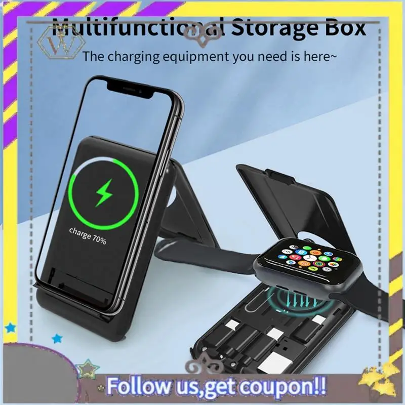 Nuevo Soporte de cargador inalámbrico de 15W, caja de almacenamiento de tarjeta Sim con aguja de Cable múltiple para Iphone 15 14 13 12 Estación de carga rápida Samsung Cargador de reloj de teléfono móvil inalámbrico de 15W mejorado/soporte de tarjeta de caja de almacenamiento
