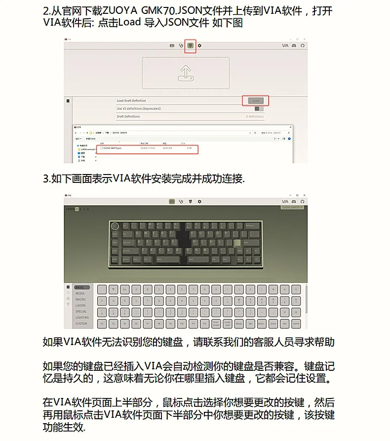 5. The GMK70 keyboard supports VIA key layout, and instructions are provided at the end of the details page. You can also consult customer service to send files