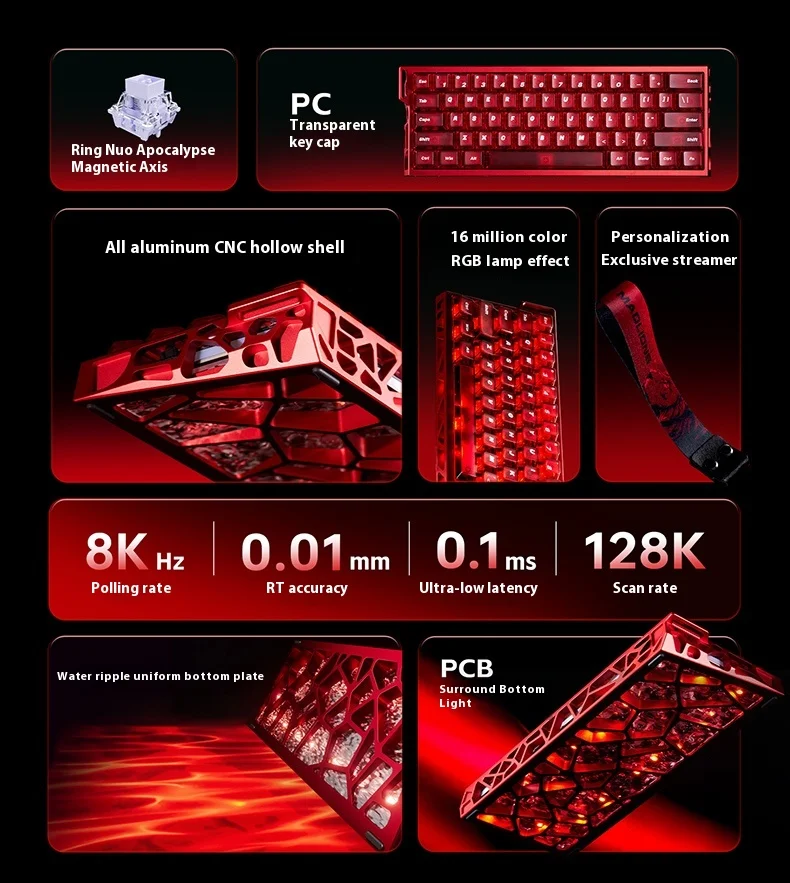 Nuevo teclado de eje magnético hueco MADLIONS MAD Light 60 HE para juegos y deportes electrónicos, el teclado de oficina es un valorante totalmente de aluminio