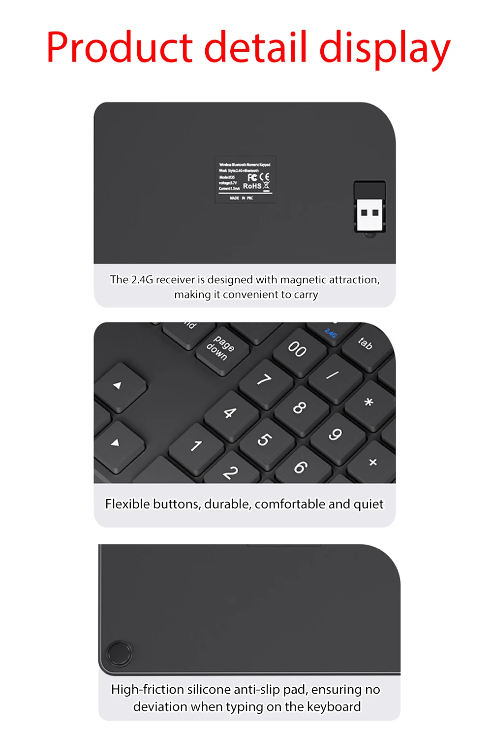 Nombre: Bluetooth dual + teclado numérico inalámbrico de 2,4G