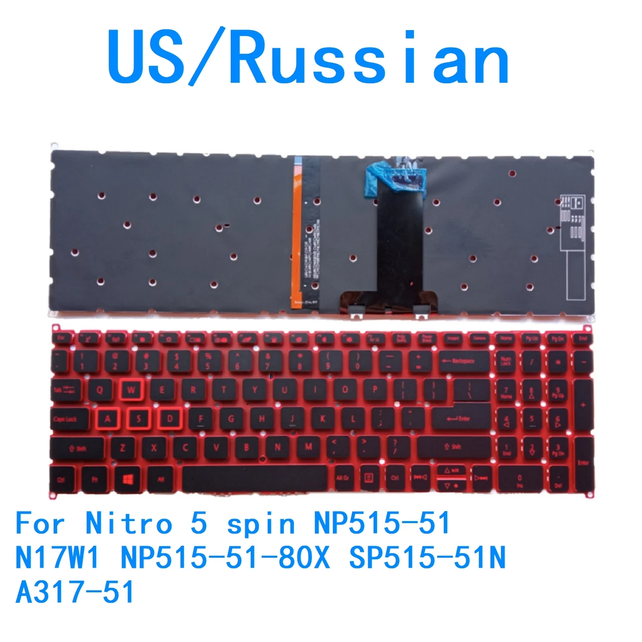 Comprar Nuevo teclado retroiluminado en idioma ruso de EE. UU. para Acer Nitro 5 spin NP515-51 N17W1 NP515-51-80X SP515-51N A317-51