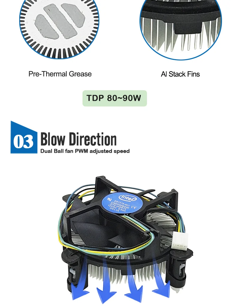Comprar Nuevo traje enfriador de CPU activo para intel 1150 1151 1155 1156 1200 disipador térmico de aluminio puro con bloque de cobre grande