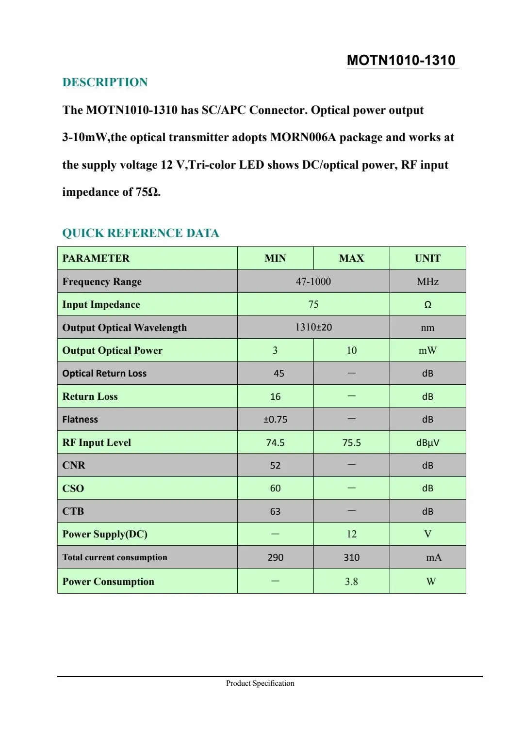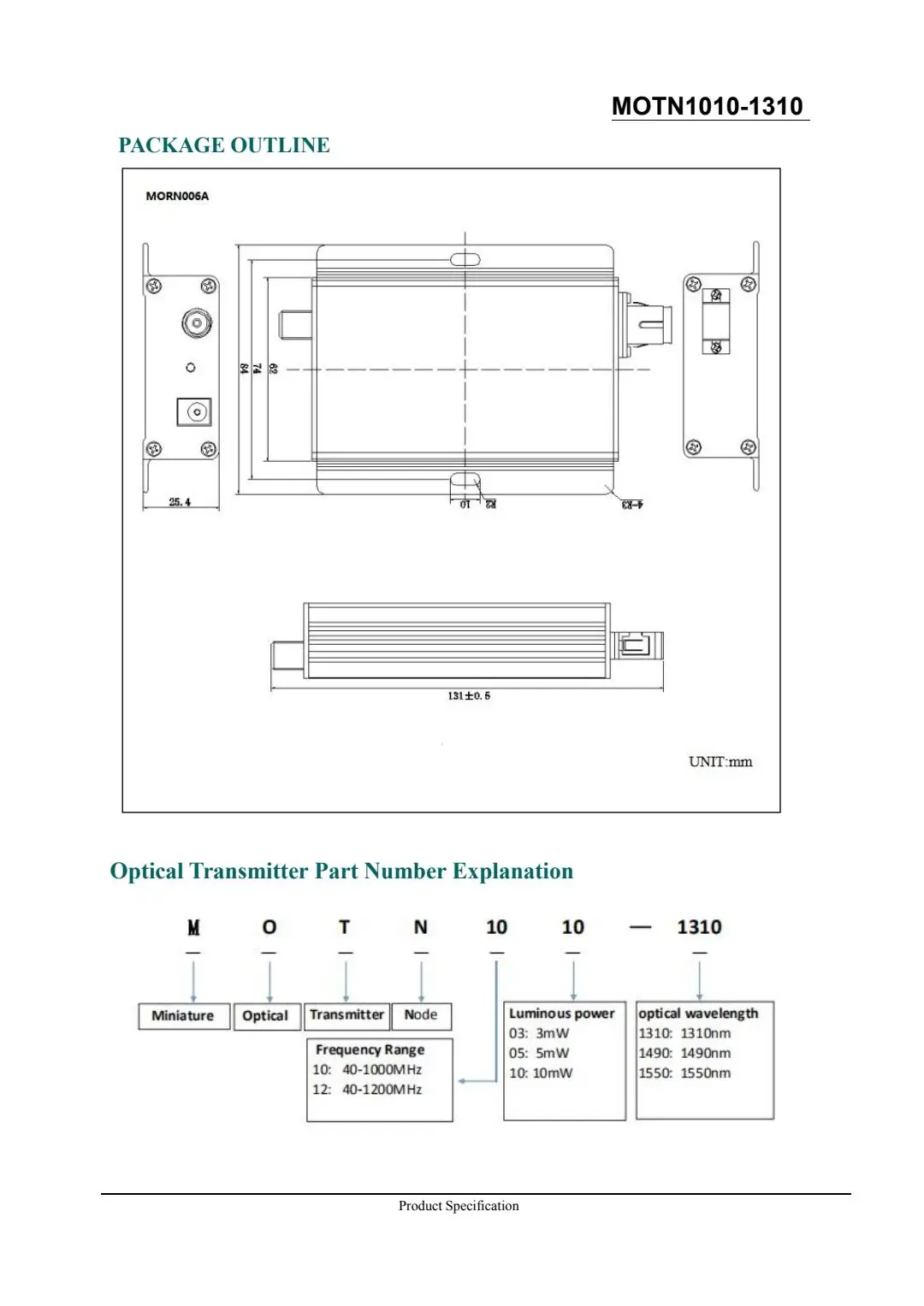 La función del transmisor óptico es convertir la señal de TV AM RF enviada por el extremo frontal en una señal óptica y transmitir la señal óptica a la distancia a través de la fibra óptica.