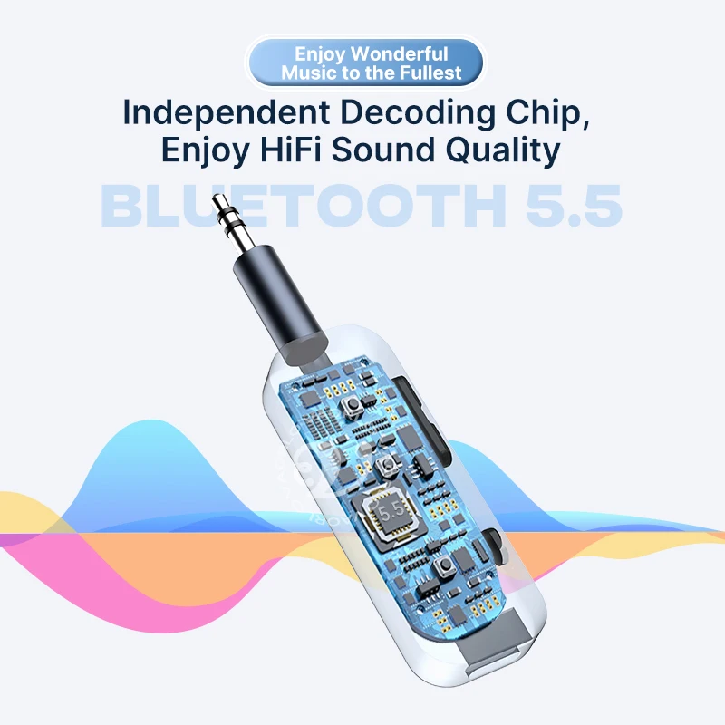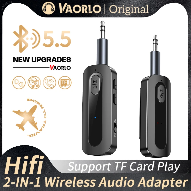 Nuevo transmisor y receptor de audio Bluetooth 5.5 2 en 1, adaptador inalámbrico de música estéreo HiFi con entrada AUX de 3,5 mm y micrófono, compatible con reproducción de tarjeta TF para automóvil, avión, viajes, TV