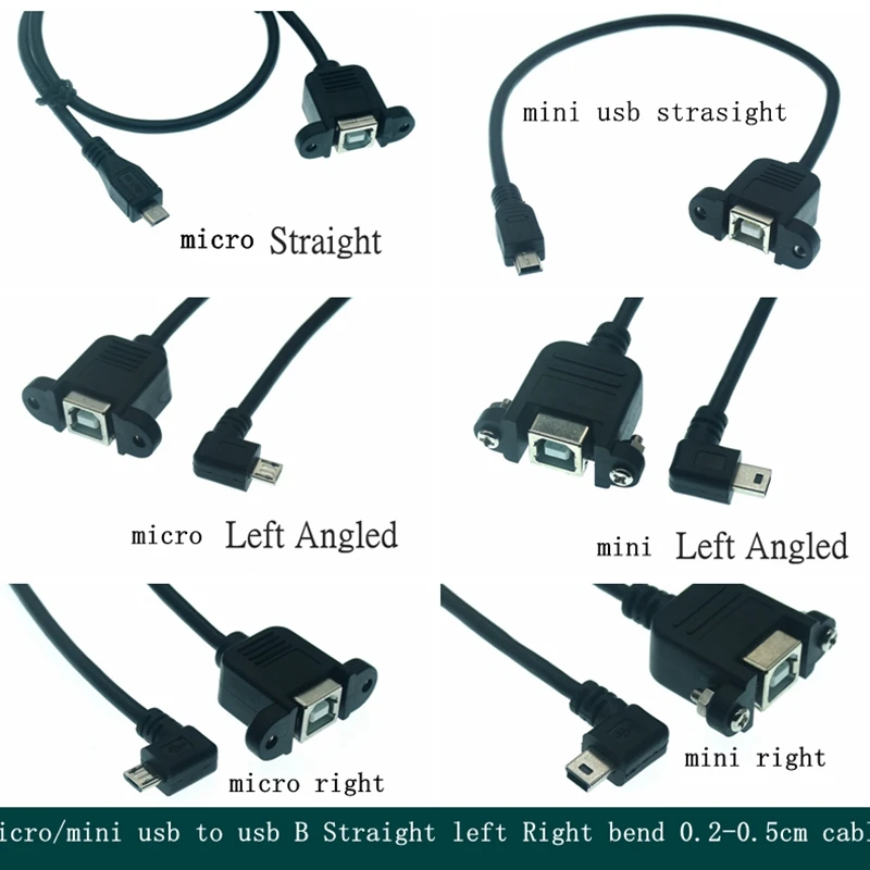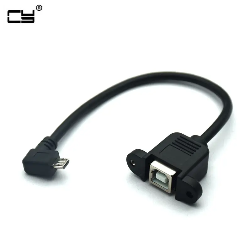 Comprar Nuevo USB 2,0 B hembra enchufe escáner impresora Panel montado en USB Mini Micro B 5 pines 90 grados macho mejor calidad 0,3 m 0,5 m Cable