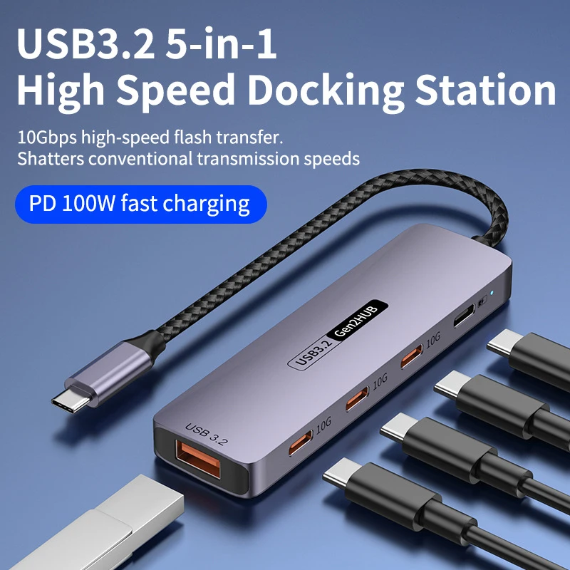 NEW USB 3.2 Gen 2 High Speed Hub 10Gbps Docking Station 4 Ports 5V 1.5A USB 3.0 PD 100w Charge for Macbook Air Pro HDD U Disc