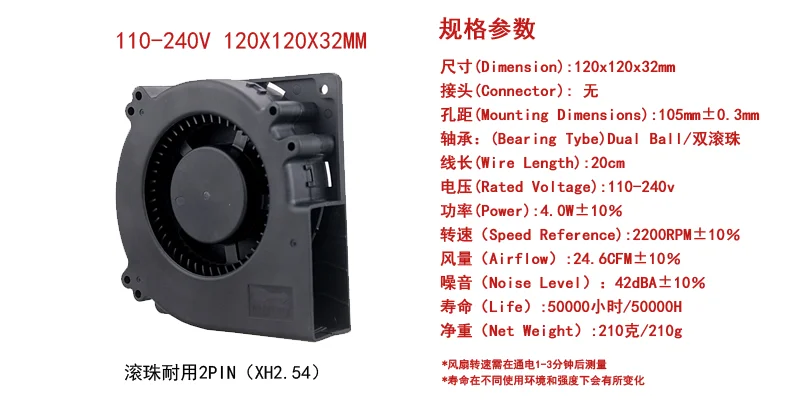 Nuevo ventilador de 12cm AC 110v 120v 220v 120mm 120*32mm ventilador turbo centrífugo de alto volumen de aire