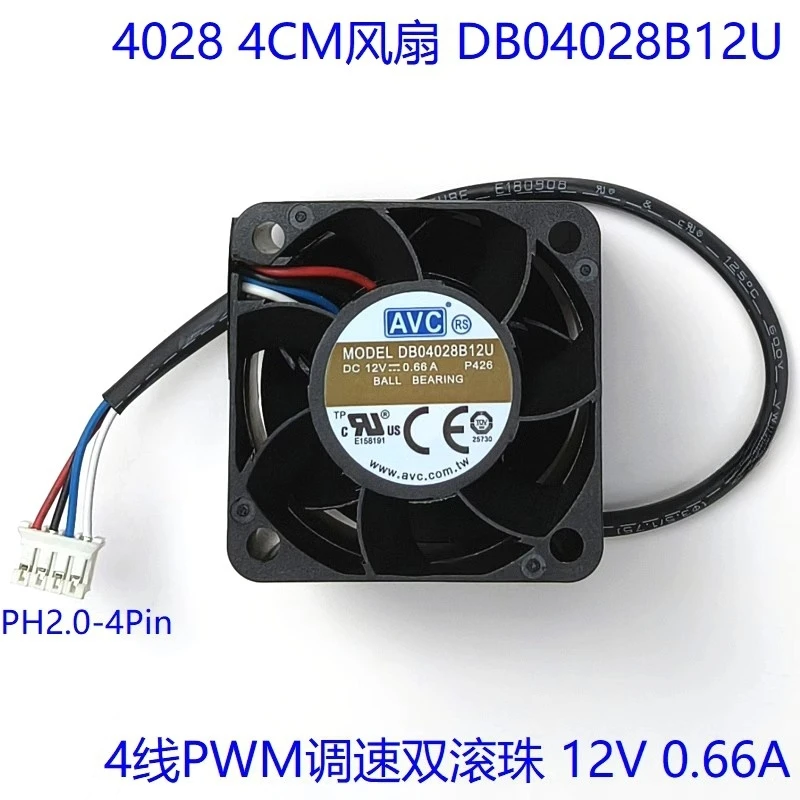 Comprar Nuevo ventilador original 4028 de 4CM regulación de velocidad de 4 cables doble rodamiento de bolas DB04028B12U 12V 0.66A pequeño enchufe 4P