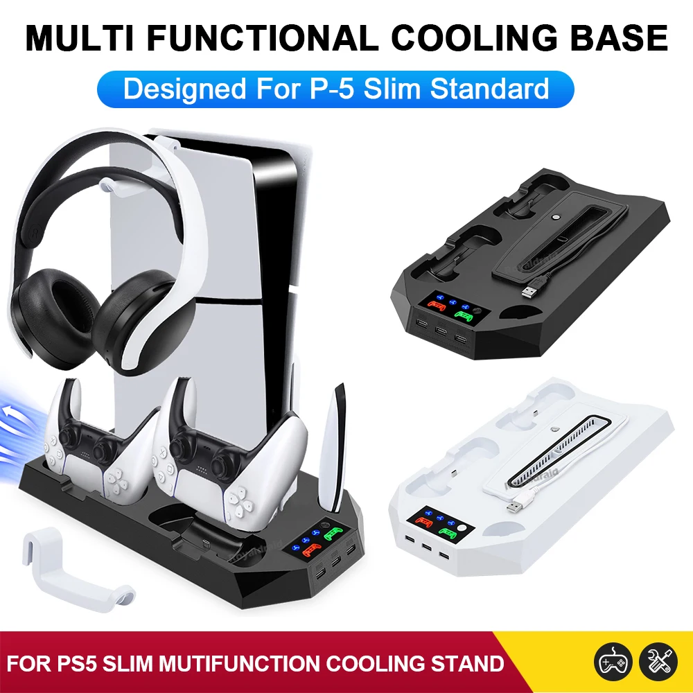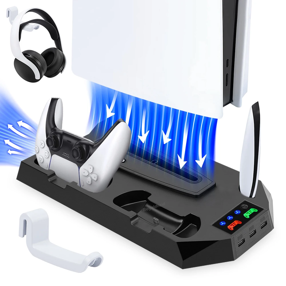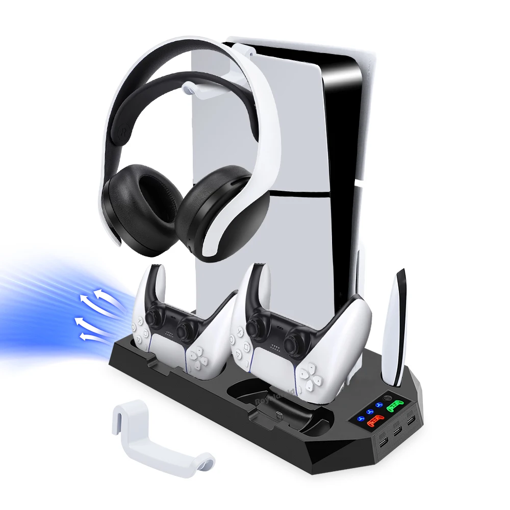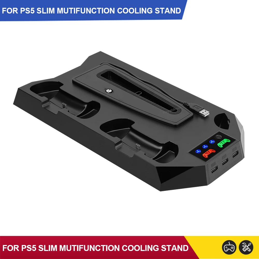 Comprar Nuevo ventilador de refrigeración de 3 modos para PS5 soporte Vertical 2 controlador base de carga para PS5 Slim Disc edición Digital Dropshipping