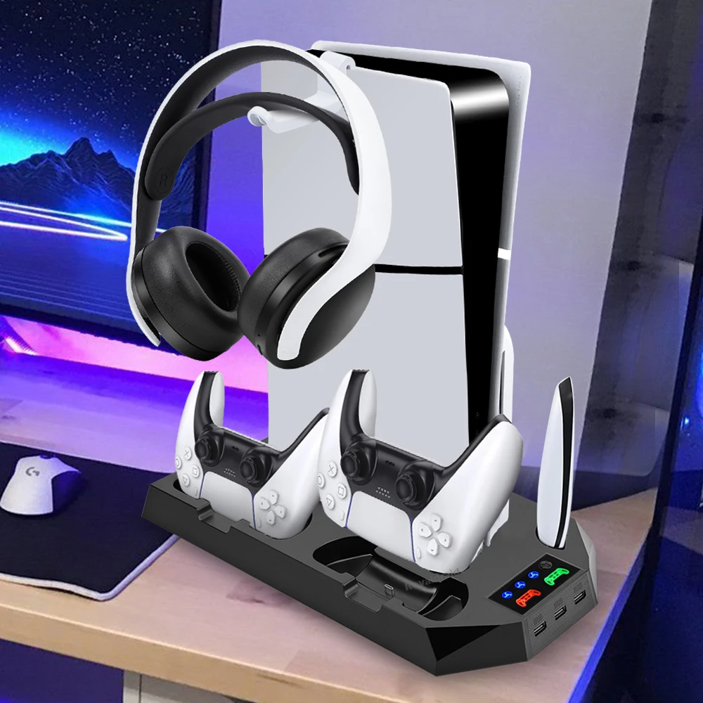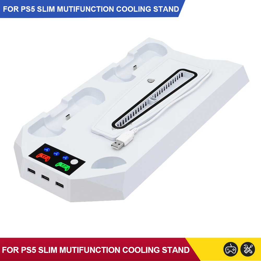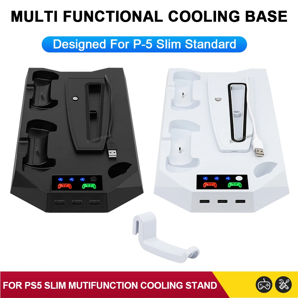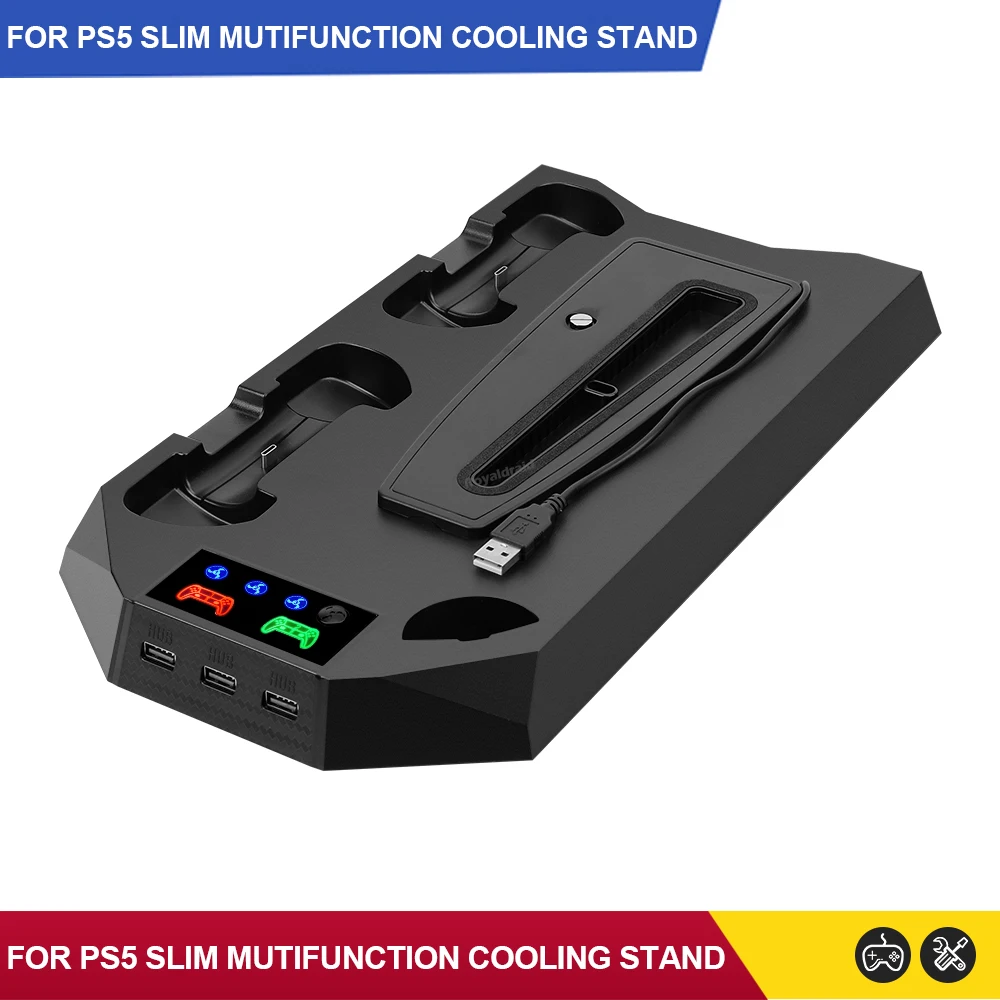 Comprar Nuevo ventilador de refrigeración de 3 modos para PS5 soporte Vertical 2 controlador base de carga para PS5 Slim Disc edición Digital Dropshipping