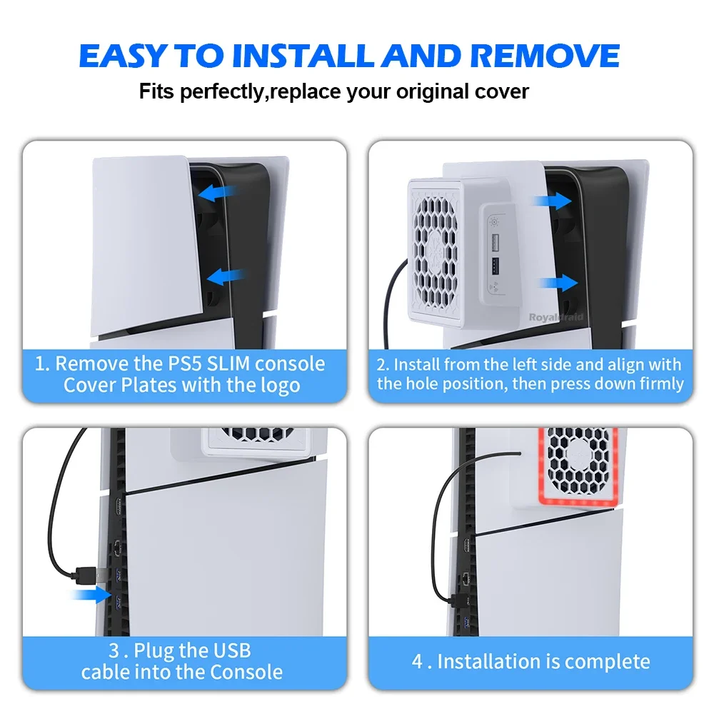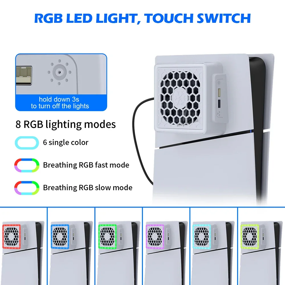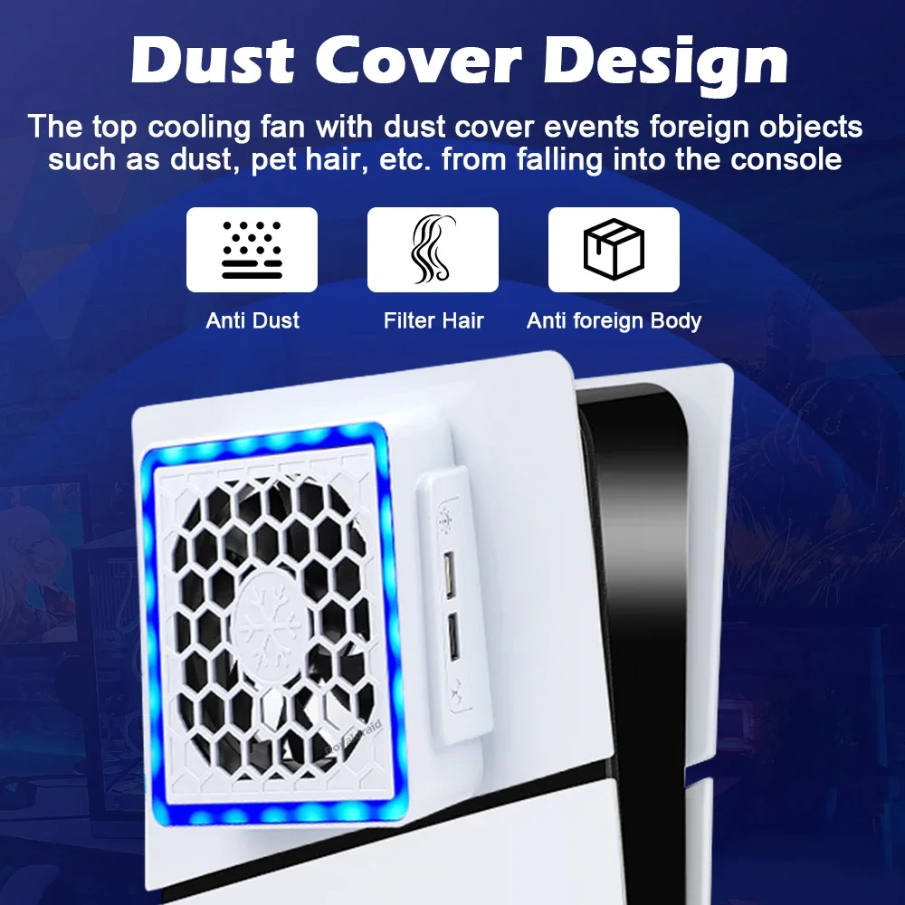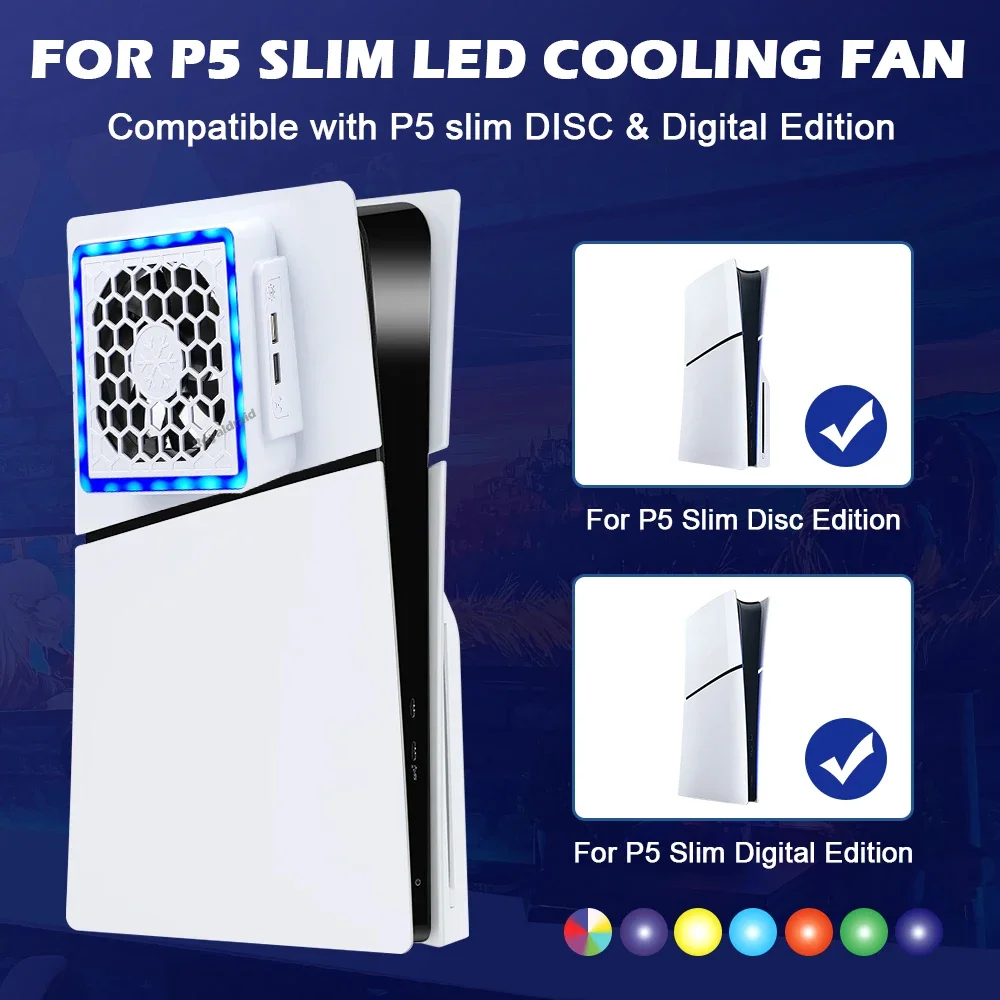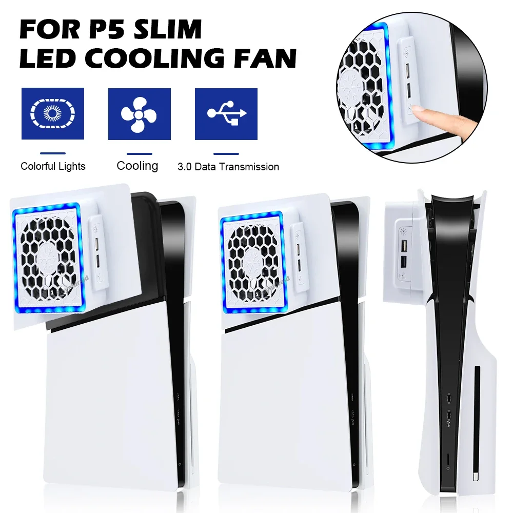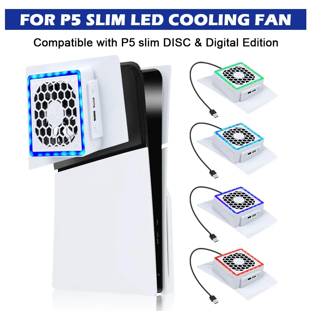 Nuevo ventilador de refrigeración lateral con luz LED, 2 puertos USB, ventilador de refrigeración para consola de juegos, Enfriador lateral para PS5 SLIM, accesorios para consola de juegos
