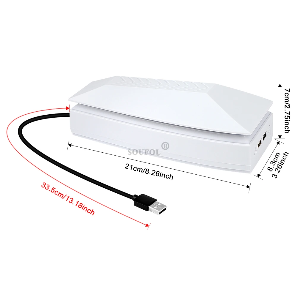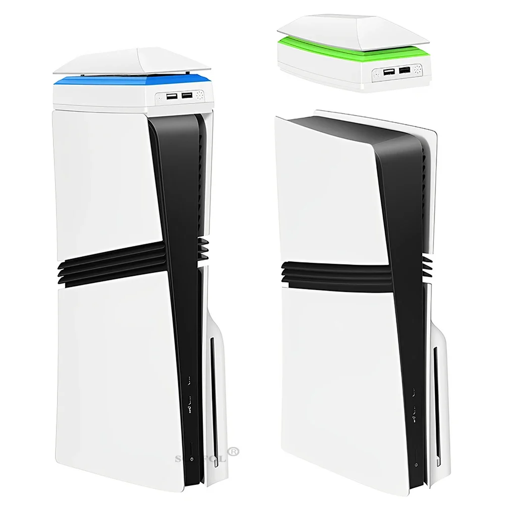 Nuevo ventilador de refrigeración superior para PS5 pro, resistente al polvo, soporte enfriador de juegos RGB superior, sistema de refrigeración de disipación de calor para PS5/PS5 Slim/PS5 PRODescripciones:(1) Este producto es compatible con consolas de juegos P5 PRO/P5 SLIM/PS5.El cable de carga USB se conecta al puerto de salida USB de la consola P5 PRO u otra fuente de alimentación.