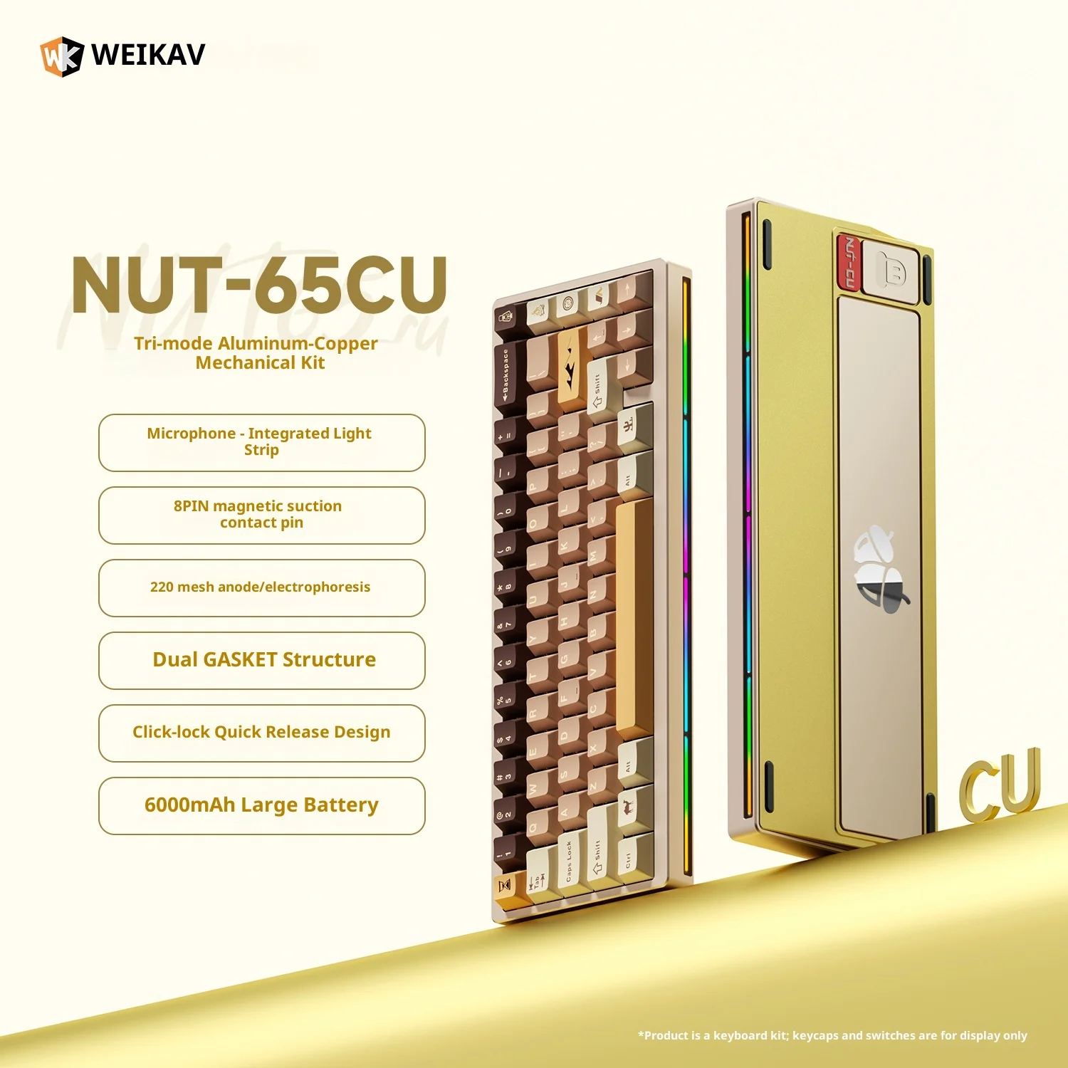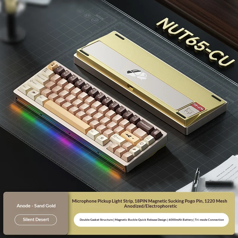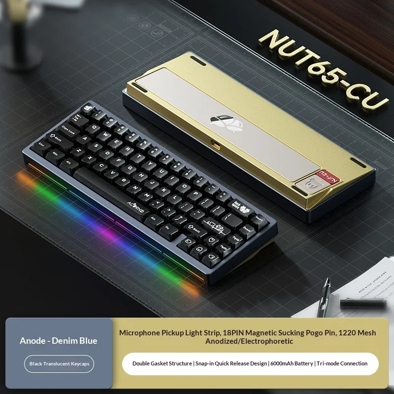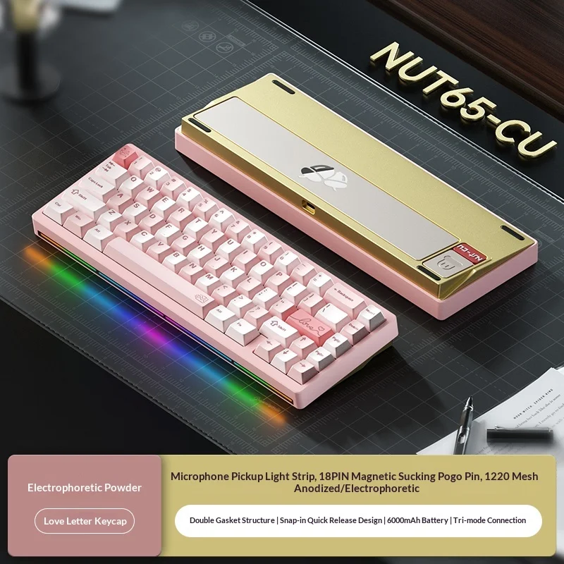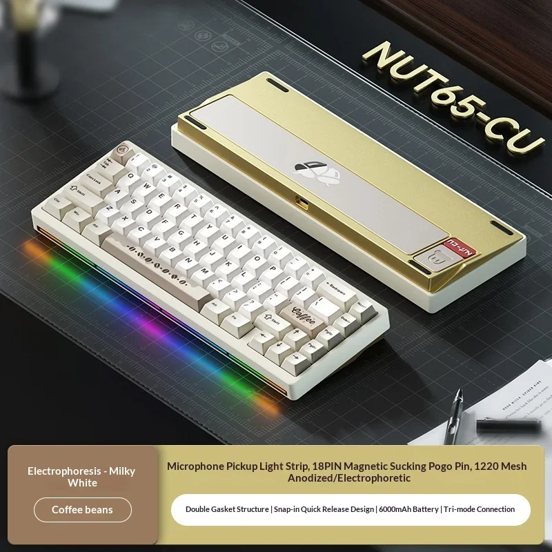 Nuevo Weikav Nut65 CU Kit de teclado mecánico 3 modos inalámbrico 2,4G teclado para juegos Nut65CU aleación de aluminio Base de cobre Shell Rgb PC
