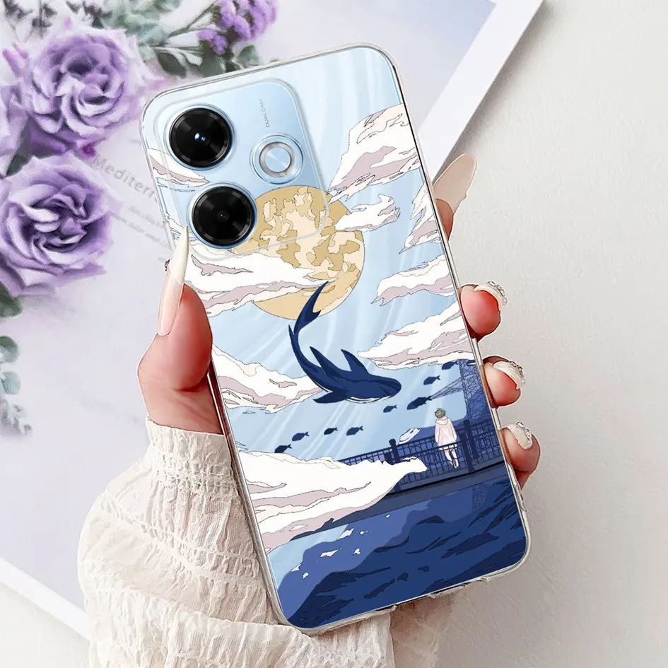 Nuevo para Xiaomi Redmi 13x 4G funda bonita de dibujos animados Panda máquina flor TPU funda de silicona suave para Xiomi Redmi 13X parachoques a prueba de golpes
