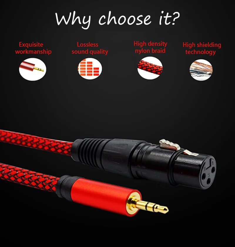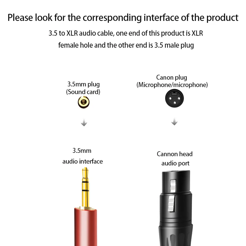 Interfaz: un extremo es un orificio hembra XLR. Enchufe macho 3,5 en el otro extremo