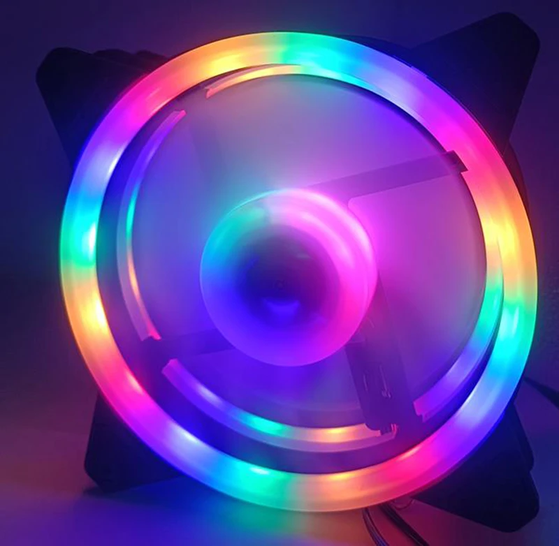 Refrigeración circular de caja RGB o ventilador de doble círculo de 120 mm con anillo LED RGB para ventilador de radiador de Color enfriador de computadora