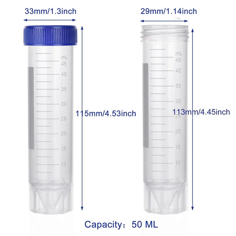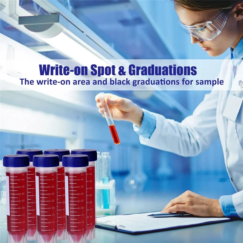 Fácil de leer: apariencia transparente, alta visibilidad le permite ver fácilmente la muestra en el interior, tubo de centrífuga estéril de 50 ml, escala blanca fácil de leer, de 5,0 ml a 45 ml en incrementos de 2,5 ml.
