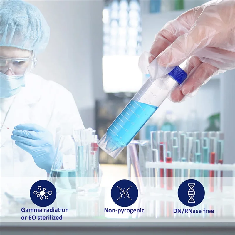 Amplia gama de aplicaciones: Nuestros tubos centrífugos de plástico se utilizan comúnmente en los campos de la bioquímica y la biología molecular, como la separación y preparación de diversas muestras biológicas.
