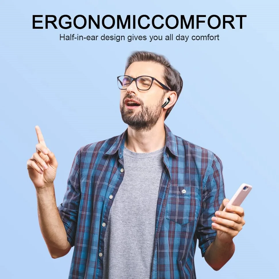 [Mini auriculares livianos]: los auriculares inalámbricos son pequeños y livianos, cada auricular pesa solo 2 g. Los auriculares internos Bluetooth son livianos como una pluma para ser cómodos y estables cuando se usan.Puedes usar los auriculares deportivos individuales durante muchas horas sin dolor.