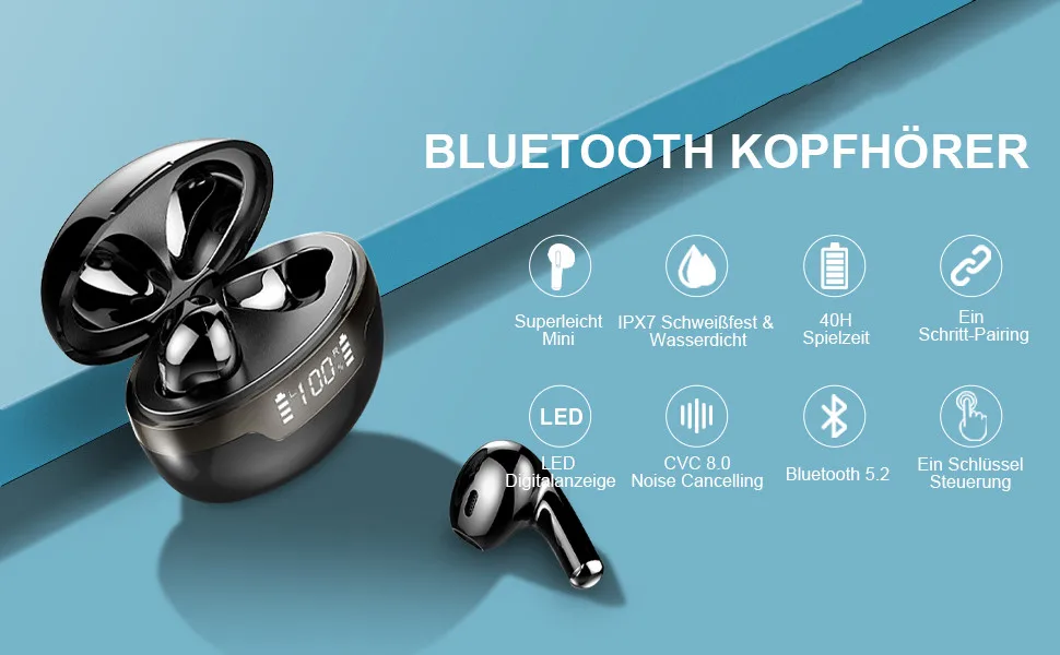 [40 horas de reproducción y carga rápida]: estos auriculares inalámbricos Bluetooth equipados con una pantalla LED digital inteligente única muestran exactamente la energía restante en formato digital.8 horas de reproducción por carga y otras 4 cargas a través de una caja de carga de bolsillo amplían tu disfrute y enriquecen tu tiempo libre.