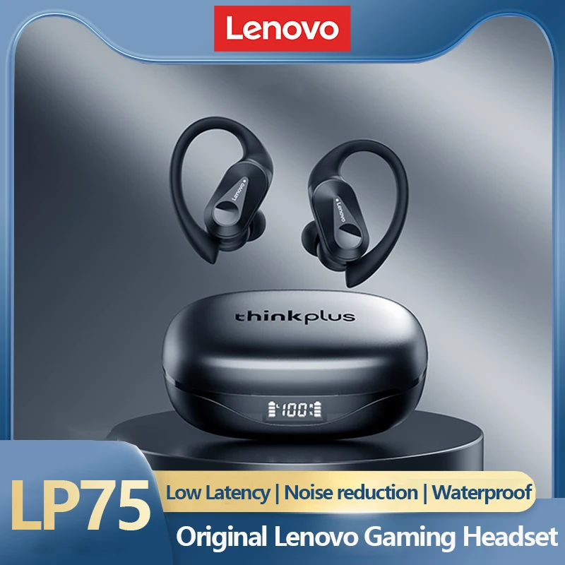 Comprar Nuevos auriculares inalámbricos Bluetooth Lenovo LP75 OWS auriculares con cancelación de ruido para juegos pantalla LED de alimentación auriculares deportivos impermeables