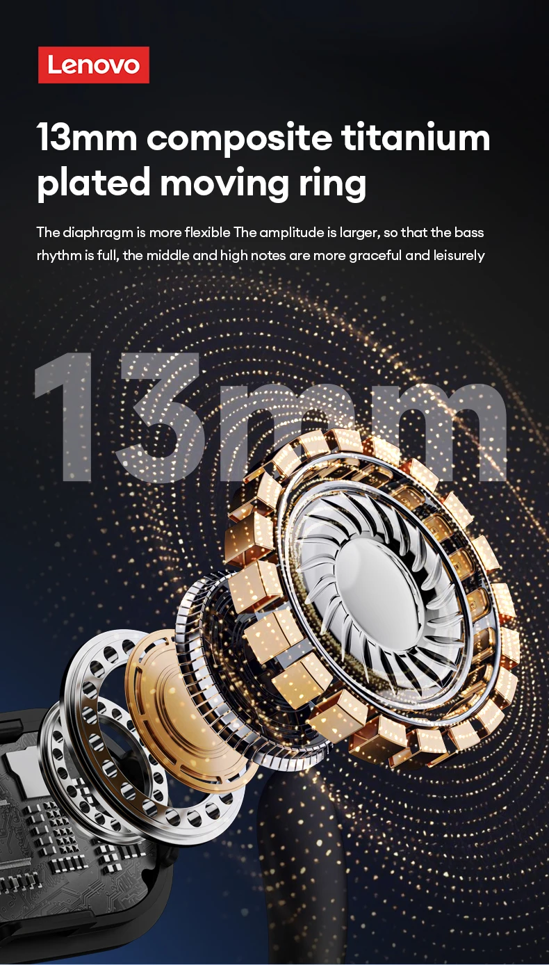 Anillo móvil compuesto chapado en titanio de 13 mm.el ritmo de los graves es completo, las notas medias y altas son más elegantes y tranquilas