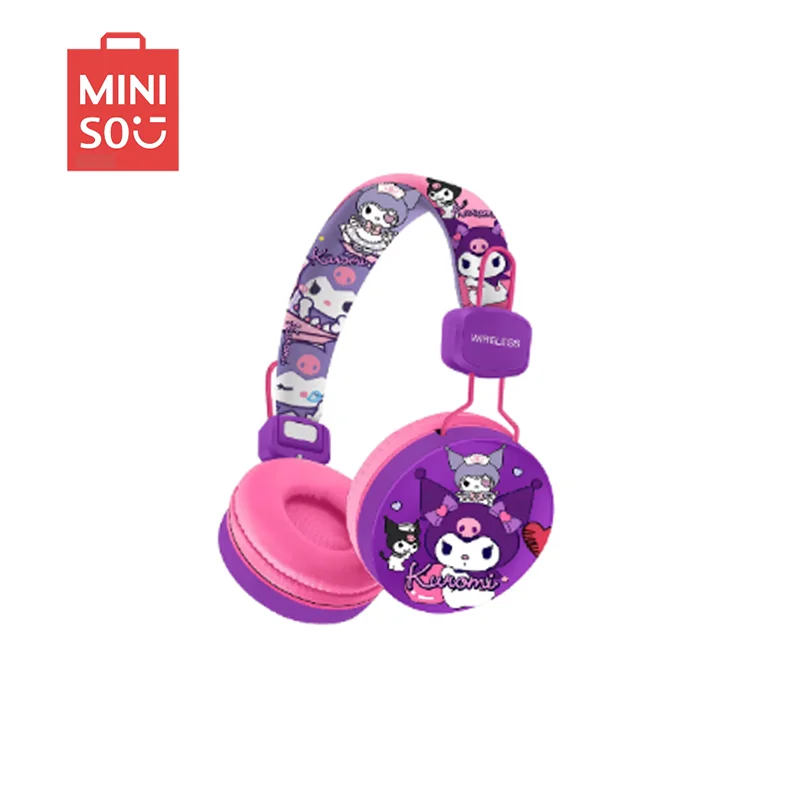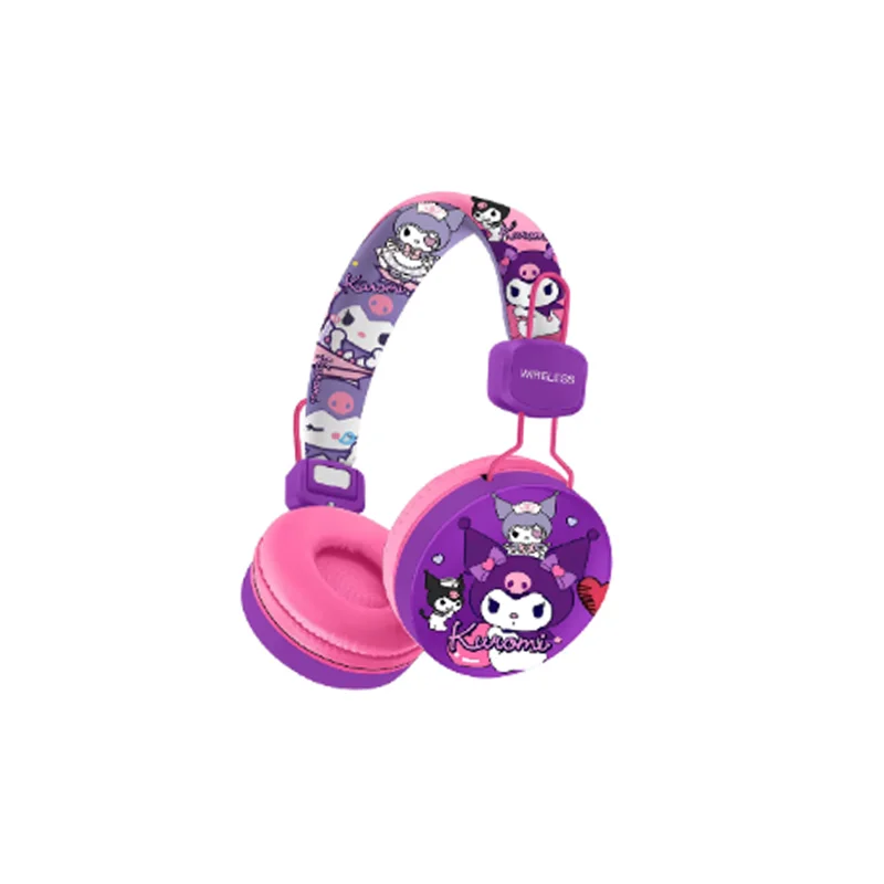 Nuevos bonitos auriculares Bluetooth montados en la cabeza de larga resistencia de alta calidad con punto de dibujos animados Kuromi bonitos auriculares estéreo