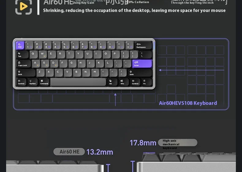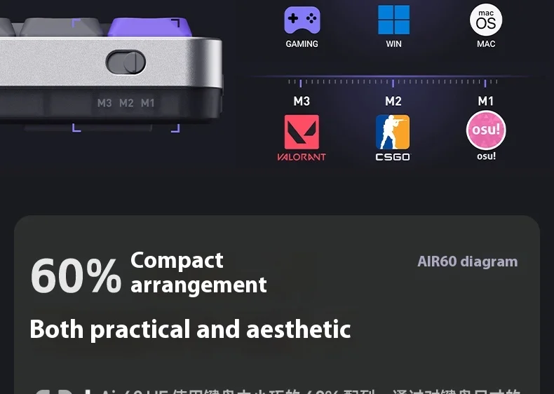 Teclados mecánicos NuPhy Air60 HE, eje magnético enano, gatillo rápido, 0,01mm, precisión, PC, Esports, teclados para juegos y portátiles