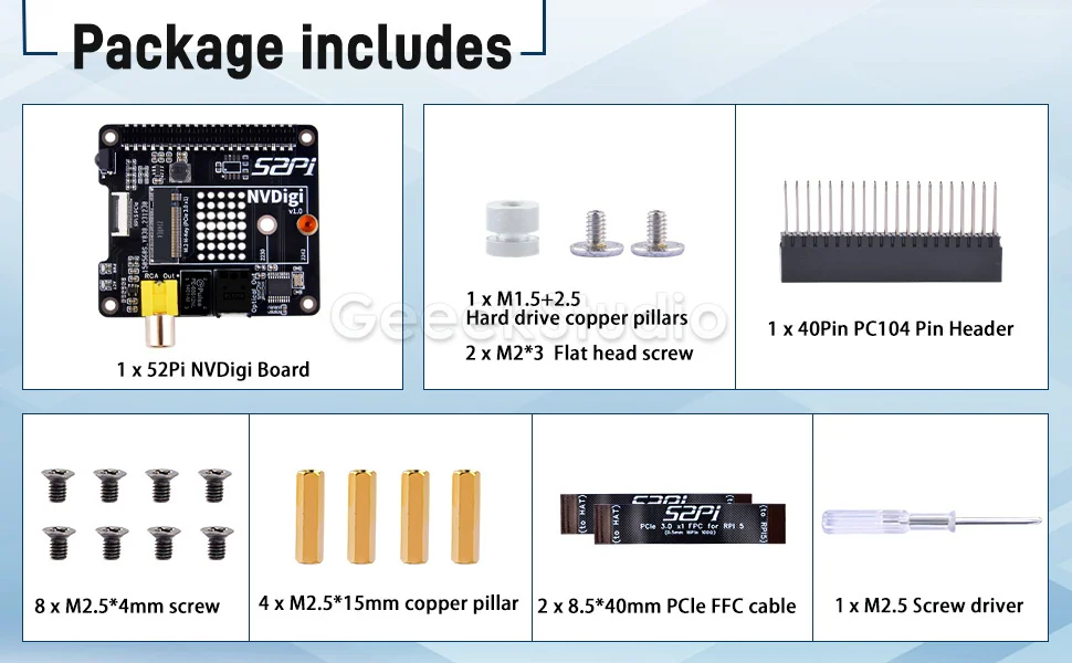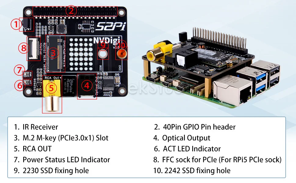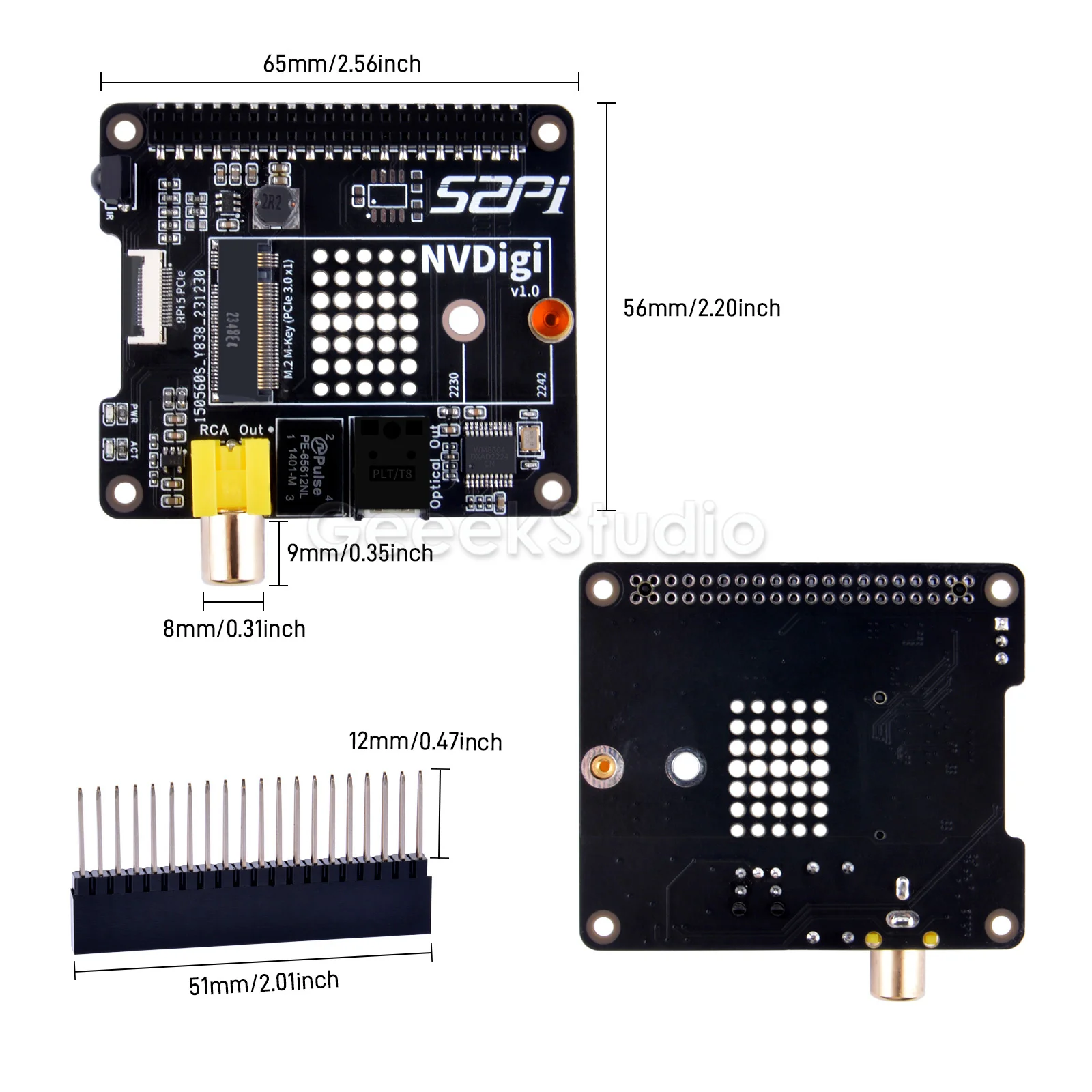 Desbloquee todo el potencial de su Raspberry Pi 5 con 52Pi NVdigi, combinando salida de audio de alta calidad con la comodidad de la expansión de almacenamiento SSD M.2 PCIe NVMe.Transforme sus proyectos en experiencias versátiles y ricas en multimedia con esta placa de expansión innovadora y llena de funciones.