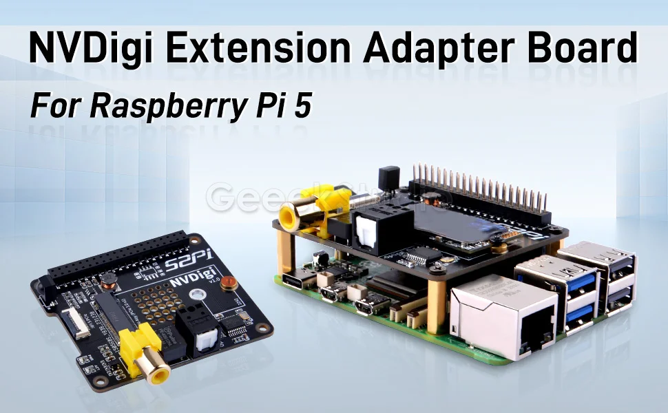El 52Pi NVdigi es una placa de expansión versátil diseñada para Raspberry Pi 5, que combina las capacidades del HiFi Digi para una salida de audio S/PDIF de alta calidad y una ranura M.2 PCIe x1 para acomodar SSD NVMe 2242/2230.Esta placa multifuncional mejora tanto las capacidades de audio como de almacenamiento de su Raspberry Pi 5.